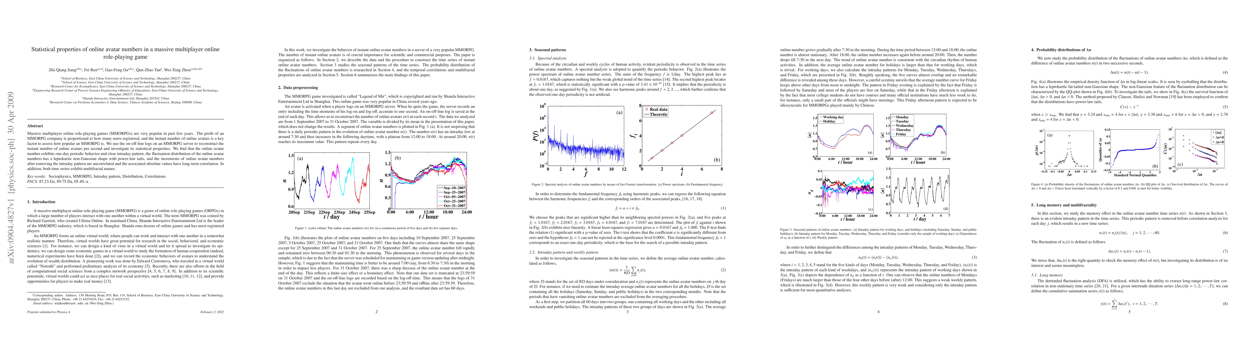This study analyzes the statistical properties of online avatar numbers in a MMORPG using server logs, revealing a one-day periodic behavior and intraday patterns. The fluctuation distribution is non-Gaussian with power-law tails, and the time series exhibits multifractal characteristics.