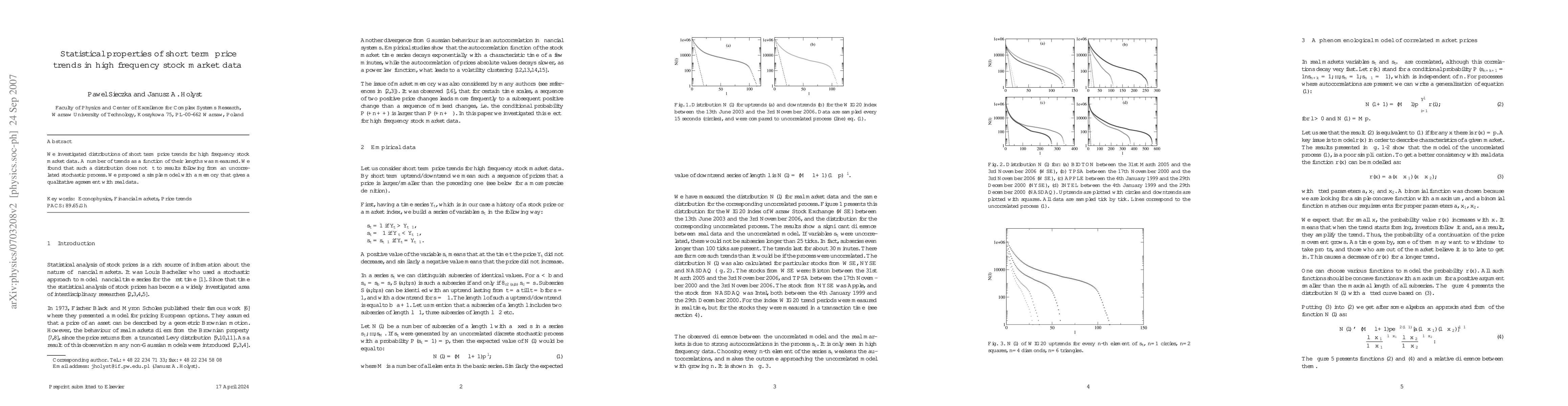 We investigated distributions of short term price trends for high frequency stock market data. A number of trends as a function of their lengths was measured. We found that such a distribution does not fit to results following from an uncorrelated stochastic process. We proposed a simple model with a memory that gives a qualitative agreement with real data.