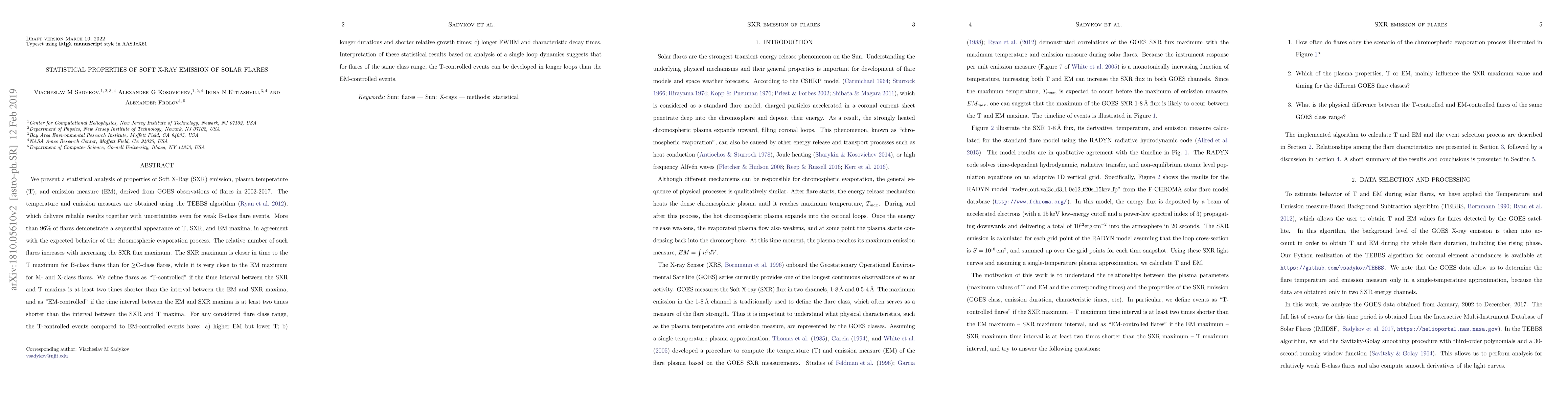 A study analyzes Soft X-Ray emission of solar flares, finding that temperature-controlled events have higher emission measures but lower temperatures, while emission-controlled events have longer durations and shorter growth times.