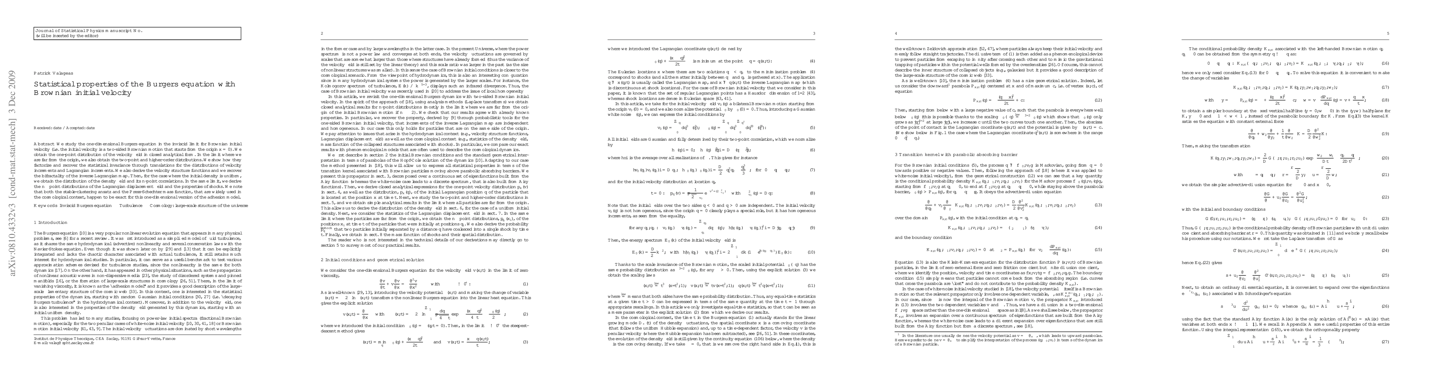 This paper investigates the statistical properties of the one-dimensional Burgers equation with Brownian initial velocity, deriving analytical forms for one-point, two-point, and higher-order distributions. It reveals factorization and invariance properties, and discusses the bifractality and shock formation, showing exact applicability of the stable-clustering ansatz and Press-Schechter mass function in this context.