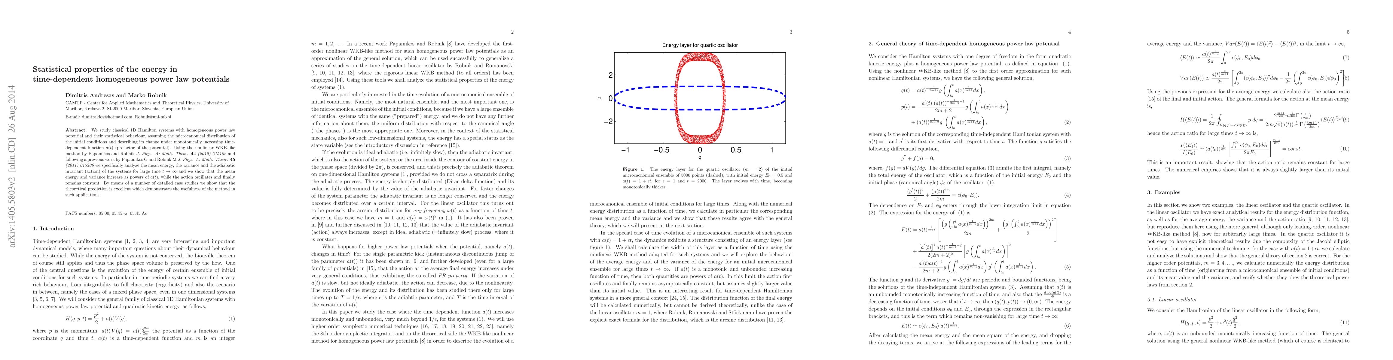 We study 1D Hamilton systems with homogeneous power law potential and their statistical behaviour, assuming the microcanonical distribution of the initial conditions and describing its change under monotonically increasing time-dependent function $a(t)$ (prefactor of the potential). Using the nonlinear WKB-like method by Papamikos and Robnik {\em J. Phys. A: Math. Theor. {\bf 44} (2012) 315102} and following a previous work by Papamikos G and Robnik M {\em J. Phys. A: Math. Theor. {\bf 45} (2011) 015206} we specifically analyze the mean energy, the variance and the adiabatic invariant (action) of the systems for large time $t\rightarrow\infty$ and we show that the mean energy and variance increase as powers of $a(t)$, while the action oscillates and finally remains constant. By means of a number of detailed case studies we show that the theoretical prediction is excellent which demonstrates the usefulness of the method in such applications.