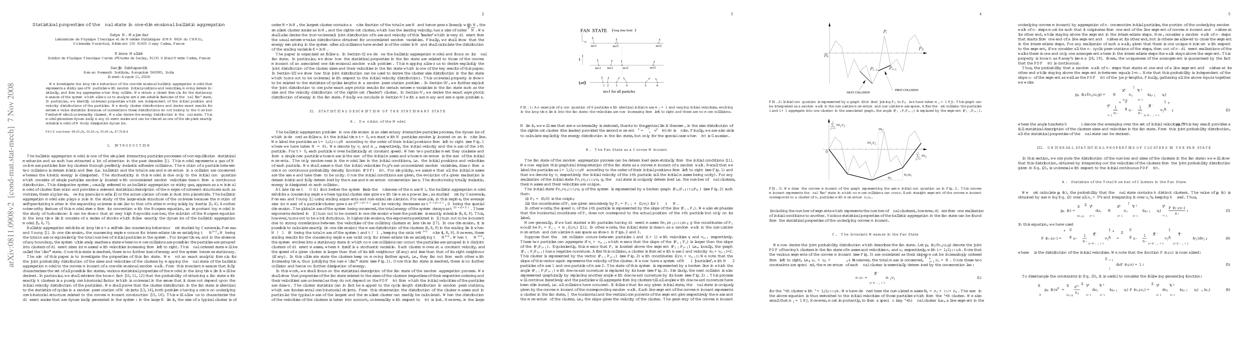 This paper explores the long-term behavior of a one-dimensional ballistic aggregation model, deriving a closed formula for the stationary measure and identifying universal properties of the final "fan" state. It also examines cluster distributions and energy distribution, revealing non-standard extreme value statistics due to inherent correlations.