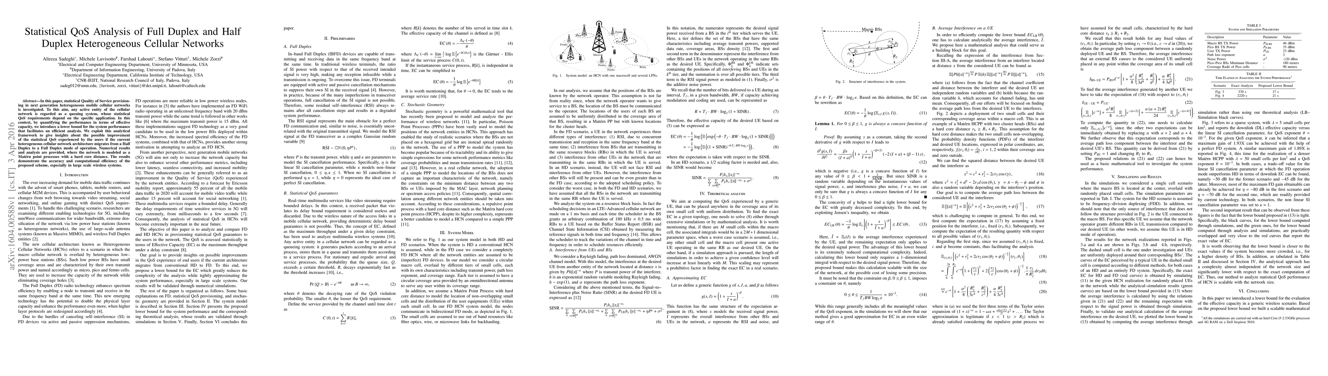 This paper investigates statistical Quality of Service (QoS) in next-generation heterogeneous cellular networks, analyzing performance improvements from Half Duplex to Full Duplex operation. It introduces an effective capacity-based lower bound for system performance, demonstrating enhanced QoS through numerical results modeled with Matérn point processes.