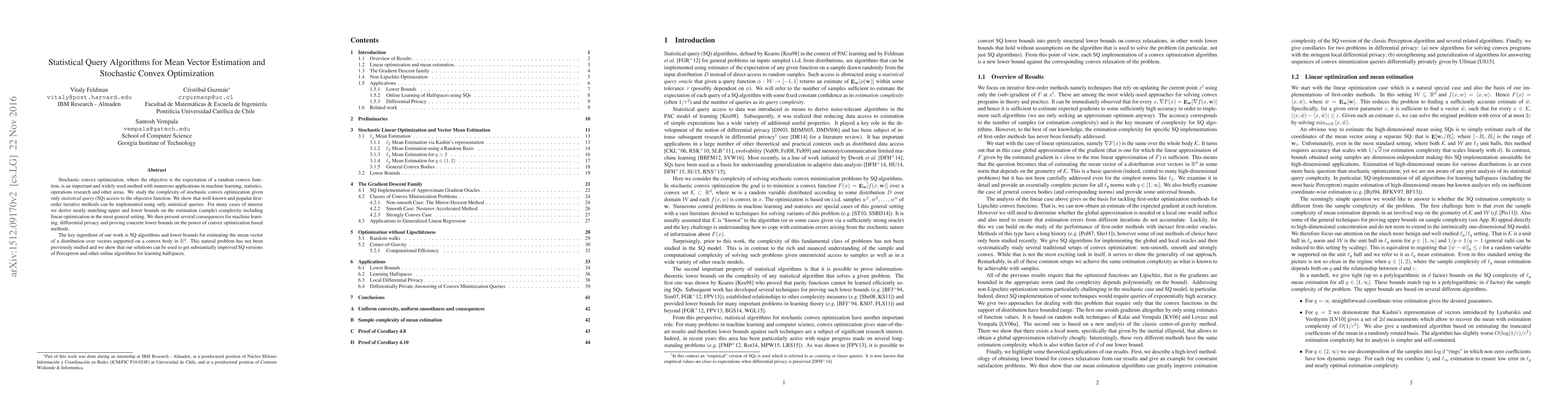 This paper develops statistical query algorithms for stochastic convex optimization, enabling faster learning of complex problems with limited access to the objective function. The research provides improved bounds on estimation complexity and has significant implications for machine learning, differential privacy, and other fields.
