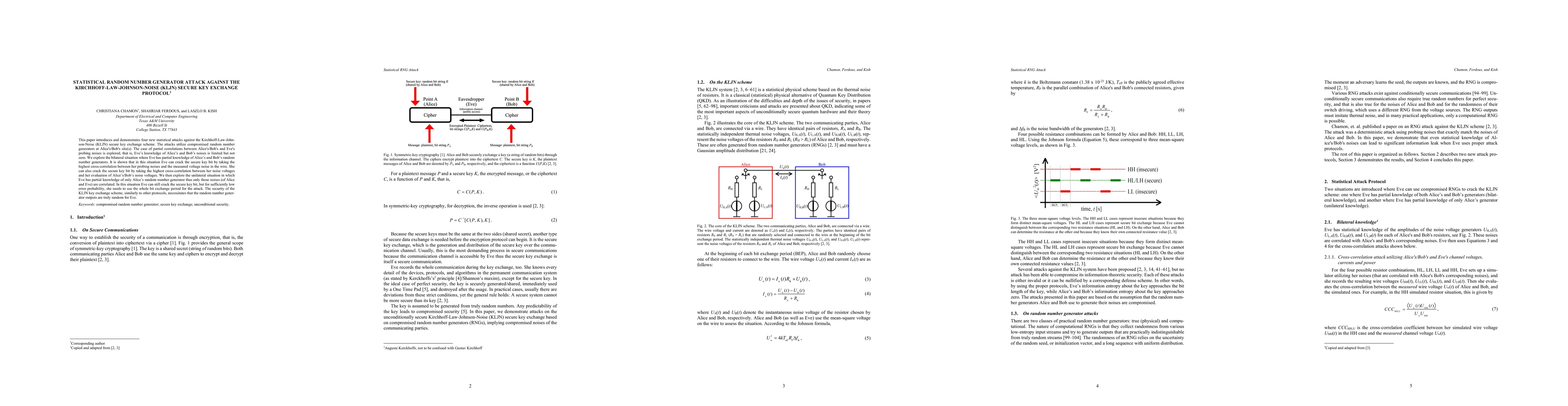 This paper presents four statistical attacks against the KLJN secure key exchange protocol, exploiting compromised random number generators. It demonstrates Eve's ability to crack the secure key by correlating her probing noises with Alice's or Bob's measured voltage noise, even with partial knowledge of their random number generators.