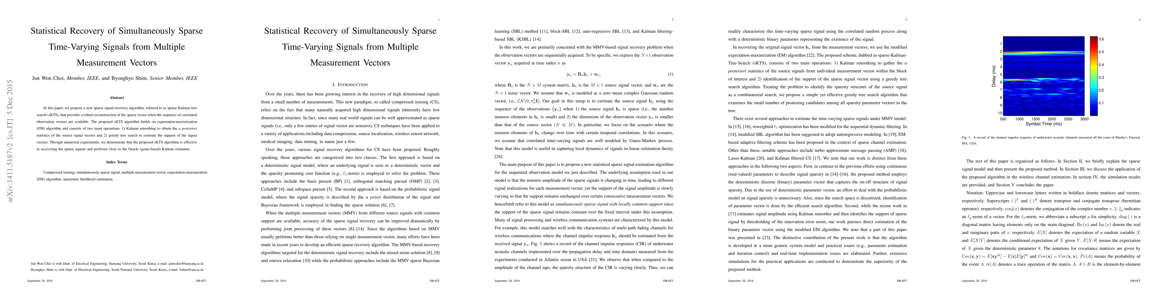 This paper introduces the sparse Kalman tree search (sKTS) algorithm for recovering sparse time-varying signals from correlated observation vectors. The sKTS algorithm combines Kalman smoothing and greedy tree search, demonstrating effective signal recovery performance close to an Oracle Kalman estimator.