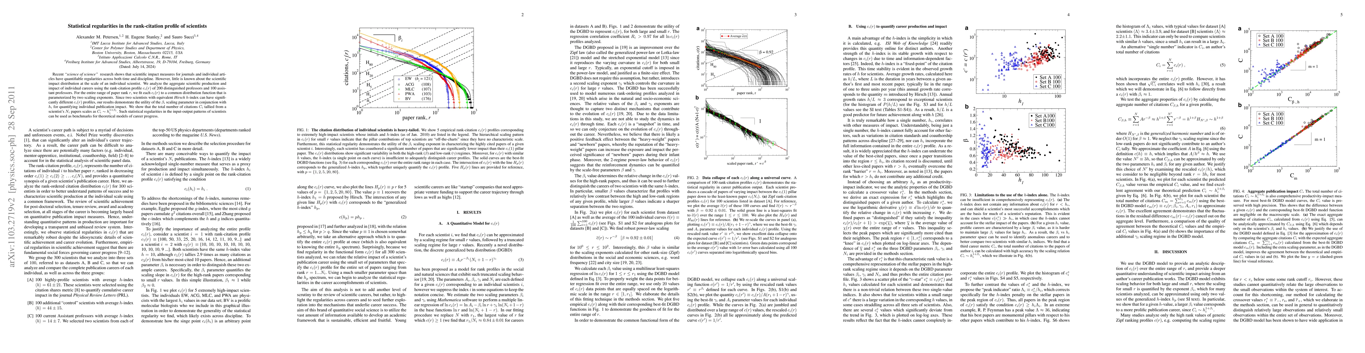 Research reveals statistical regularities in individual scientist impact, using a common distribution function to quantify publication impact. Scientists with equivalent Hirsch index can have different citation patterns, highlighting the utility of scaling parameters for benchmarking career models.