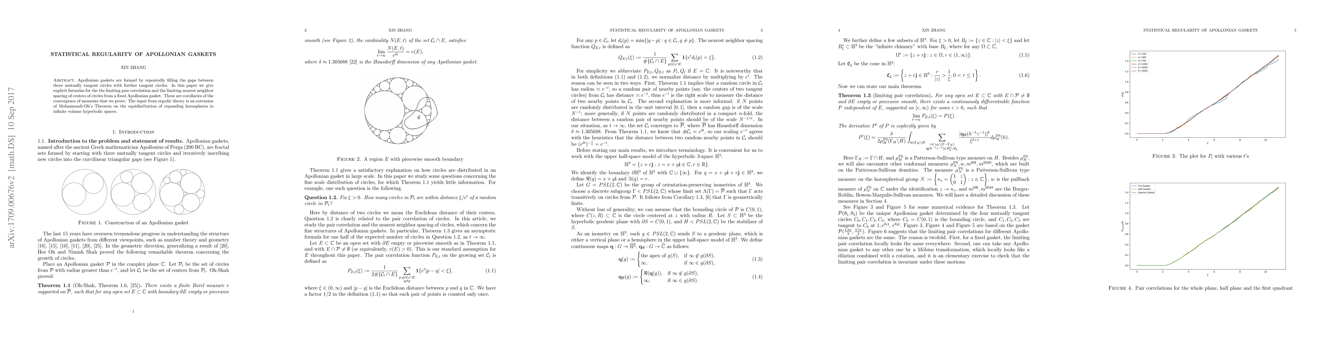 Apollonian gaskets are formed by repeatedly filling the gaps between three mutually tangent circles with further tangent circles. In this paper we give explicit formulas for the the limiting pair correlation and the limiting nearest neighbor spacing of centers of circles from a fixed Apollonian gasket. These are corollaries of the convergence of moments that we prove. The input from ergodic theory is an extension of Mohammadi-Oh's Theorem on the equidisribution of expanding horospheres in infinite volume hyperbolic spaces.