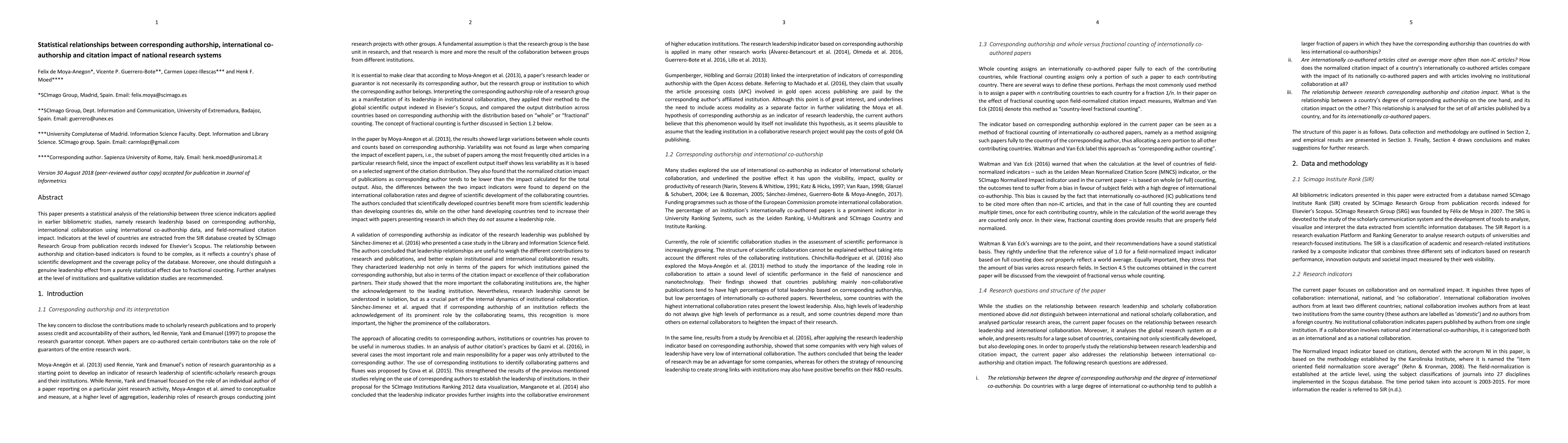 This paper presents a statistical analysis of the relationship between three science indicators applied in earlier bibliometric studies, namely research leadership based on corresponding authorship, international collaboration using international co-authorship data, and field-normalized citation impact. Indicators at the level of countries are extracted from the SIR database created by SCImago Research Group from publication records indexed for Elsevier's Scopus. The relationship between authorship and citation-based indicators is found to be complex, as it reflects a country's phase of scientific development and the coverage policy of the database. Moreover, one should distinguish a genuine leadership effect from a purely statistical effect due to fractional counting. Further analyses at the level of institutions and qualitative validation studies are recommended.