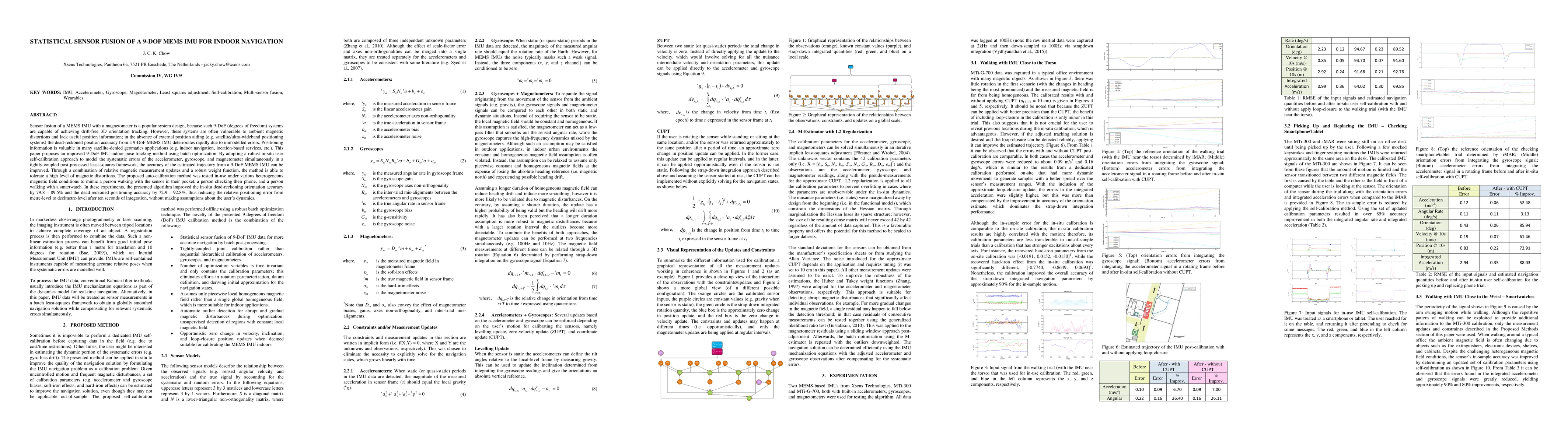 This paper proposes a statistical sensor fusion method for a 9-DoF MEMS IMU to enhance indoor navigation accuracy, using batch optimization and in-situ self-calibration to model systematic errors and improve orientation and positioning accuracy. The method reduces relative positioning error from meters to decimeters within ten seconds of integration.