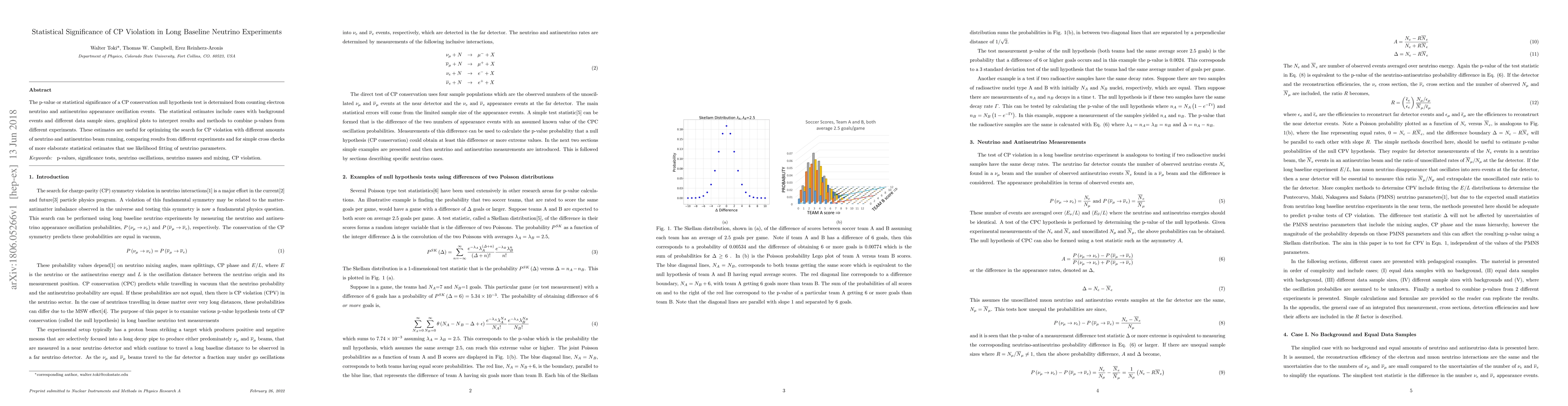 This paper calculates statistical significance of CP violation in long baseline neutrino experiments using different data samples sizes and methods to combine p-values from multiple experiments. It aims to optimize searches for CP violation with varying beam running conditions.