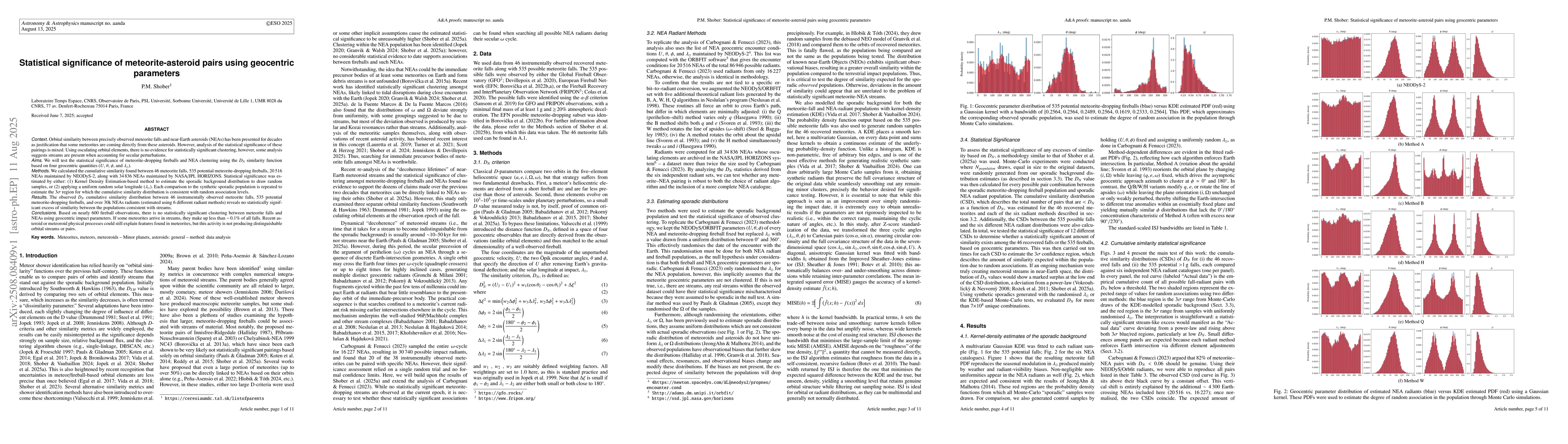 Aims. We will test the statistical significance of meteorite-dropping fireballs and NEA clustering using the DN similarity function based on four geocentric quantities (U, theta, phi, and lambda). Methods. We calculated the cumulative similarity found between 46 meteorite falls, 535 potential meteorite-dropping fireballs, 20,516 NEAs maintained by NEODyS-2, along with 34,836 NEAs maintained by NASA/JPL HORIZONS. Statistical significance was estimated by either: (1) Kernel Density Estimation-based method to estimate the sporadic background distribution to draw random samples, or (2) applying a uniform random solar longitude (lambda). Each comparison to the synthetic sporadic population is repeated to estimate the 3-sigma region for which the cumulative similarity distribution is consistent with random association levels. Results. The observed DN cumulative similarity distribution between 46 instrumentally observed meteorite falls, 535 potential meteorite-dropping fireballs, and over 30k NEAs radiants (estimated using 6 different radiant methods) reveals no statistically significant excess of similarity between the populations consistent with streams. Conclusions. Based on nearly 600 fireball observations, there is no statistically significant clustering between meteorite falls and NEAs using geocentric impact parameters. If some meteorites arrive in streams, they make up less than ~0.1% of all falls. Recent asteroid or meteoroid physical processes could still explain features found in meteorites, but this activity is not producing distinguishable orbital streams or pairs.