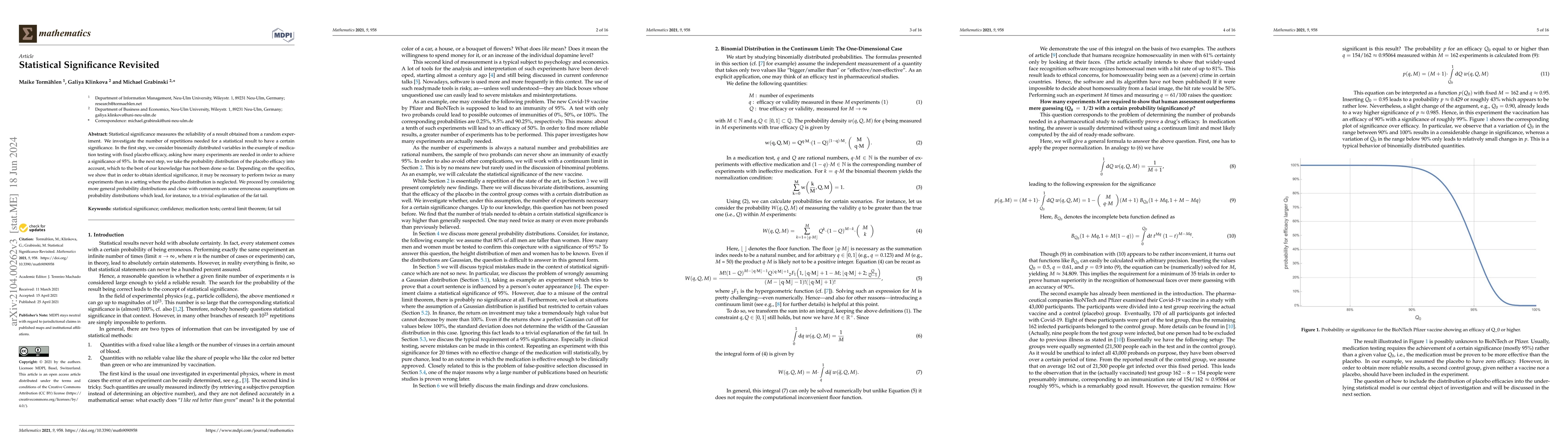 Statistical significance measures the reliability of a result obtained from a random experiment. We investigate the number of repetitions needed for a statistical result to have a certain significance. In the first step, we consider binomially distributed variables in the example of medication testing with fixed placebo efficacy, asking how many experiments are needed in order to achieve a significance of 95 %. In the next step, we take the probability distribution of the placebo efficacy into account, which to the best of our knowledge has not been done so far. Depending on the specifics, we show that in order to obtain identical significance, it may be necessary to perform twice as many experiments than in a setting where the placebo distribution is neglected. We proceed by considering more general probability distributions and close with comments on some erroneous assumptions on probability distributions which lead, for instance, to a trivial explanation of the fat tail.