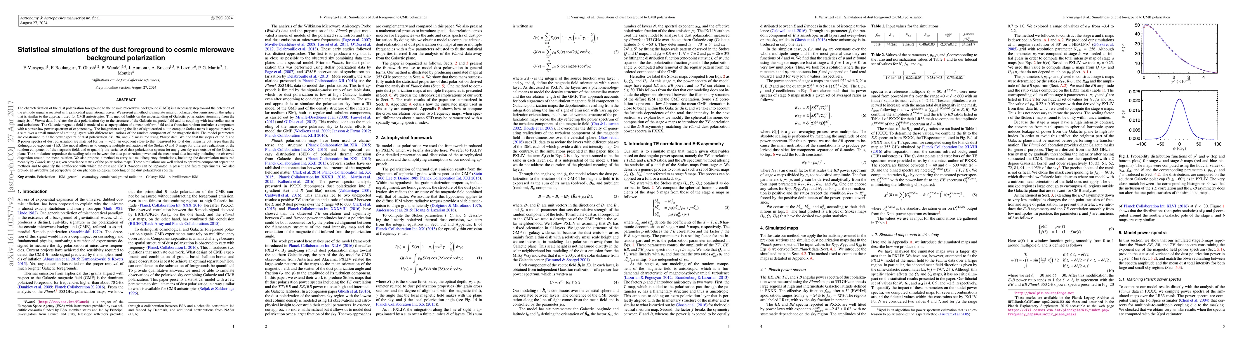 This paper presents a statistical simulation method for modeling the polarized dust foreground affecting the Cosmic Microwave Background (CMB) polarization, crucial for detecting primordial gravitational waves. The method relates dust polarization to the Galactic magnetic field and uses Planck data to constrain model parameters, achieving a good fit for the dust polarization power spectra.