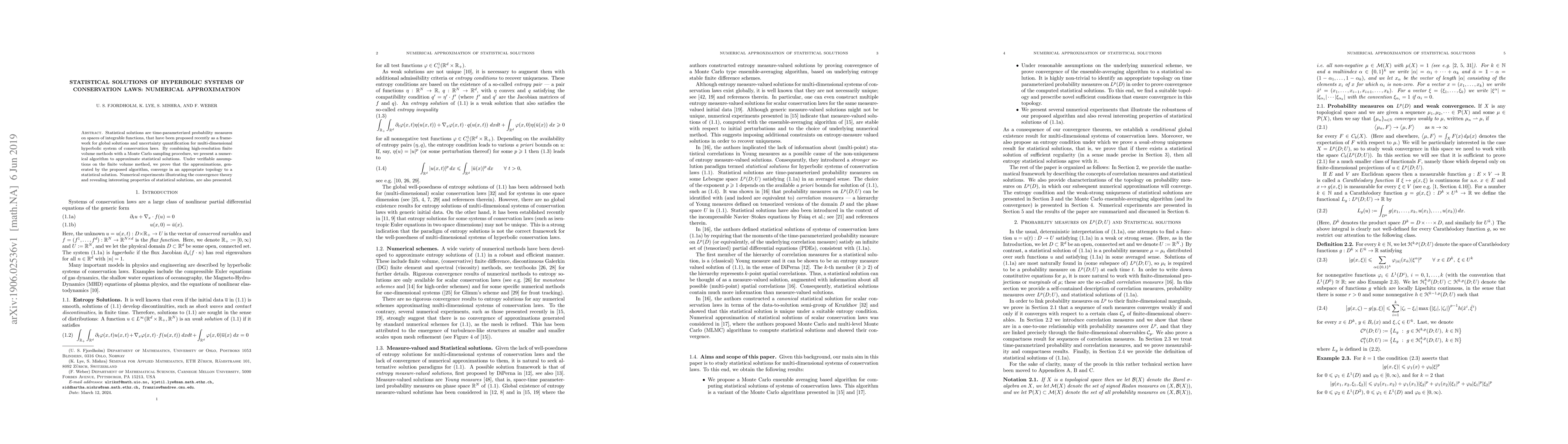 This paper proposes a numerical algorithm using high-resolution finite volume methods combined with Monte Carlo sampling to approximate statistical solutions for hyperbolic systems of conservation laws. It proves the convergence of the algorithm to a statistical solution under certain assumptions and presents numerical experiments to validate the theory.