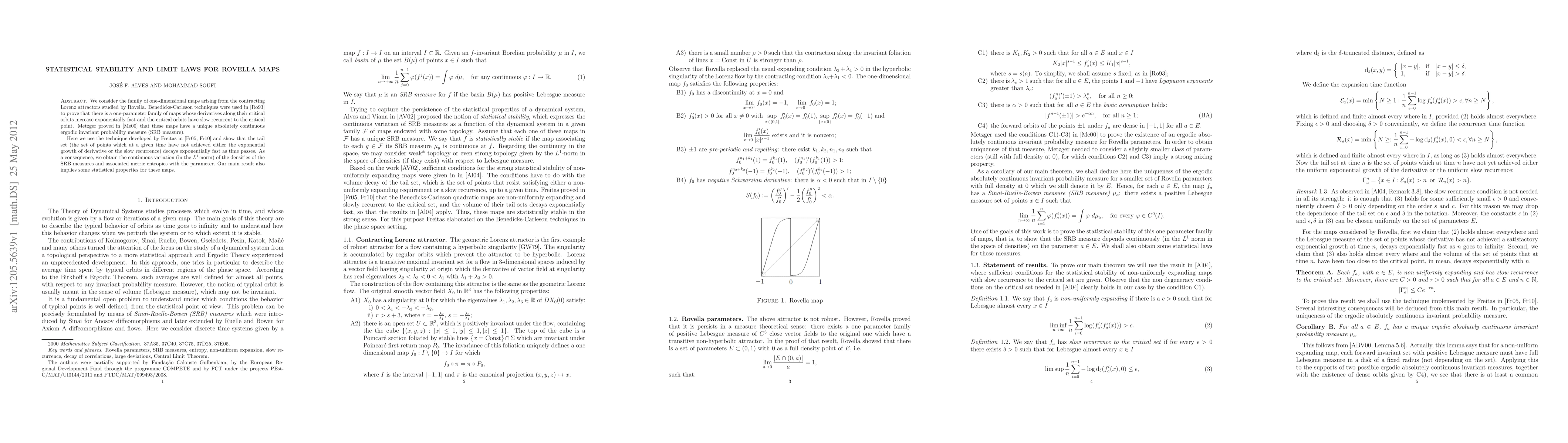 We consider the family of one-dimensional maps arising from the contracting Lorenz attractors studied by Rovella. Benedicks-Carleson techniques were used by Rovella to prove that there is a one-parameter family of maps whose derivatives along their critical orbits increase exponentially fast and the critical orbits have slow recurrent to the critical point. Metzger proved that these maps have a unique absolutely continuous ergodic invariant probability measure (SRB measure). Here we use the technique developed by Freitas and show that the tail set (the set of points which at a given time have not achieved either the exponential growth of derivative or the slow recurrence) decays exponentially fast as time passes. As a consequence, we obtain the continuous variation of the densities of the SRB measures and associated metric entropies with the parameter. Our main result also implies some statistical properties for these maps.