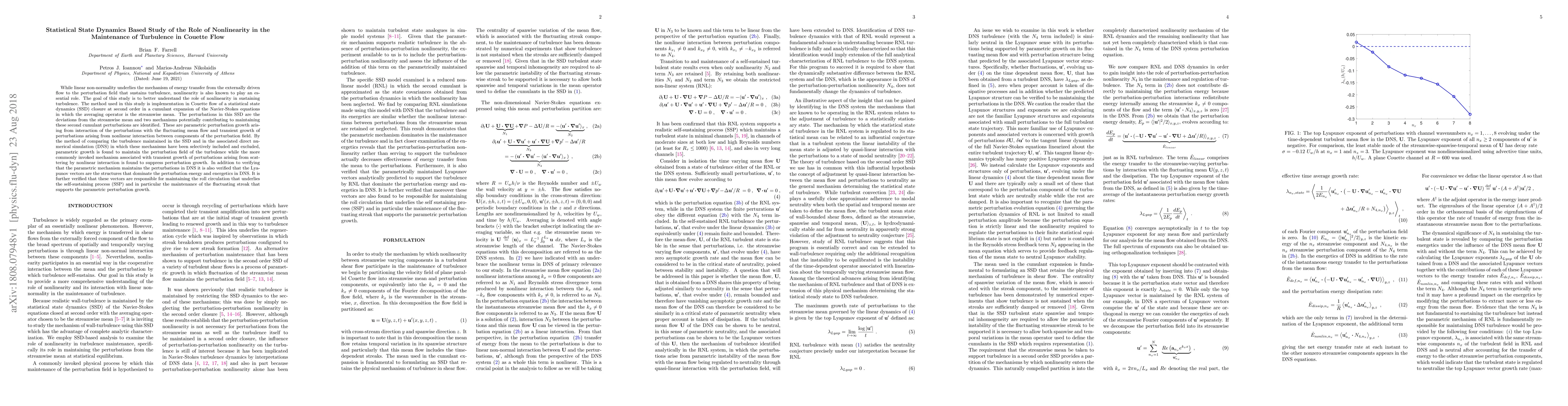This study investigates the role of nonlinearity in turbulence maintenance in Couette flow using statistical state dynamics (SSD) closure. Parametric perturbation growth is identified as the dominant mechanism sustaining turbulence, while transient growth is found to suppress it. The Lyapunov vectors are shown to maintain the roll circulation and fluctuating streaks essential for the self-sustaining process.