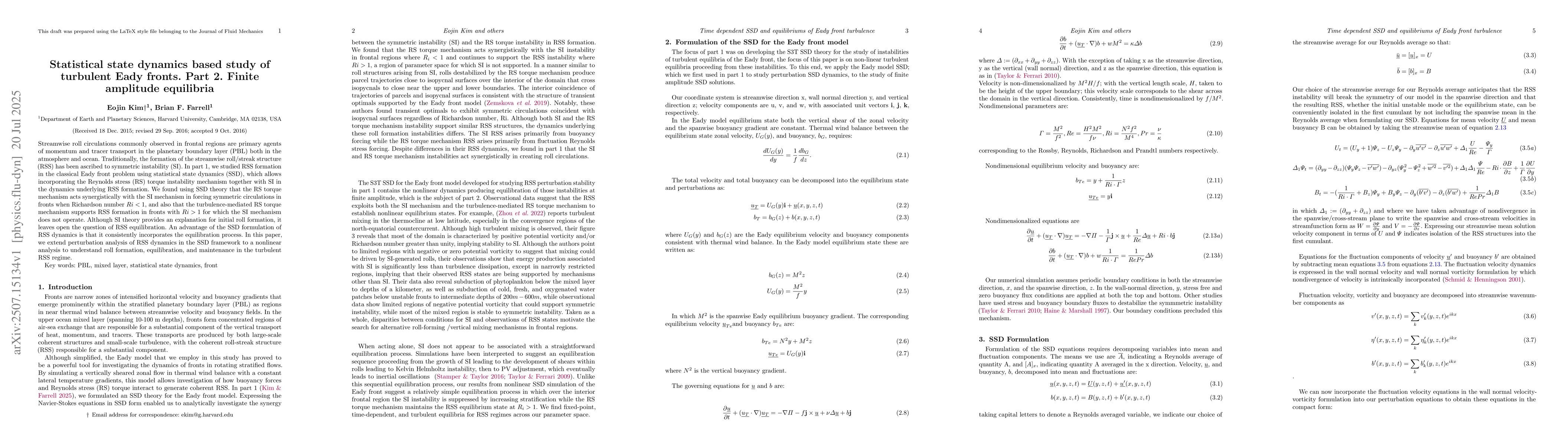Streamwise roll circulations commonly observed in frontal regions are primary agents of momentum and tracer transport in the planetary boundary layer (PBL) both in the atmosphere and ocean. Traditionally, the formation of the streamwise roll/streak structure (RSS) has been ascribed to symmetric instability (SI). In part 1, we studied RSS formation in the classical Eady front problem using statistical state dynamics (SSD), which allows incorporating the Reynolds stress (RS) torque instability mechanism together with SI in the dynamics underlying RSS formation. We found using SSD theory that the RS torque mechanism acts synergistically with the SI mechanism in forcing symmetric circulations in fronts when Richardson number Ri < 1, and also that the turbulence-mediated RS torque mechanism supports RSS formation in fronts with Ri > 1 for which the SI mechanism does not operate. Although SI theory provides an explanation for initial roll formation, it leaves open the question of RSS equilibration. An advantage of the SSD formulation of RSS dynamics is that it consistently incorporates the equilibration process. In this paper, we extend perturbation analysis of RSS dynamics in the SSD framework to a nonlinear analysis to understand roll formation, equilibration, and maintenance in the turbulent RSS regime.