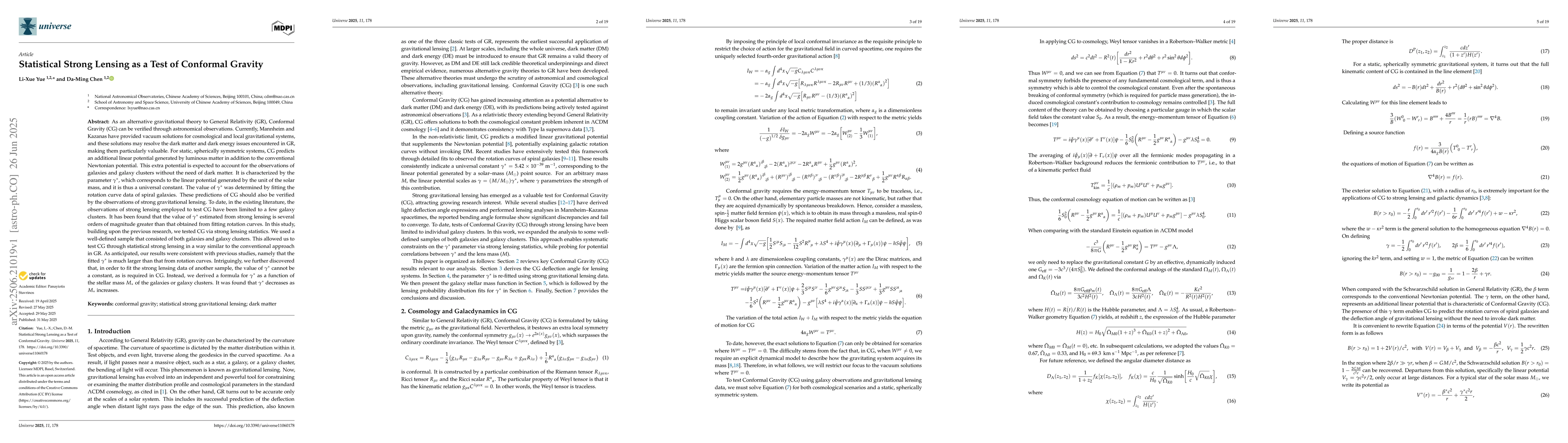 It introduces a mass-dependent γ∗ relation based on strong lensing data, contrasting with the universal constant used in previous galaxy rotation curve fits, and highlights the scale-dependent limitations of conformal gravity.