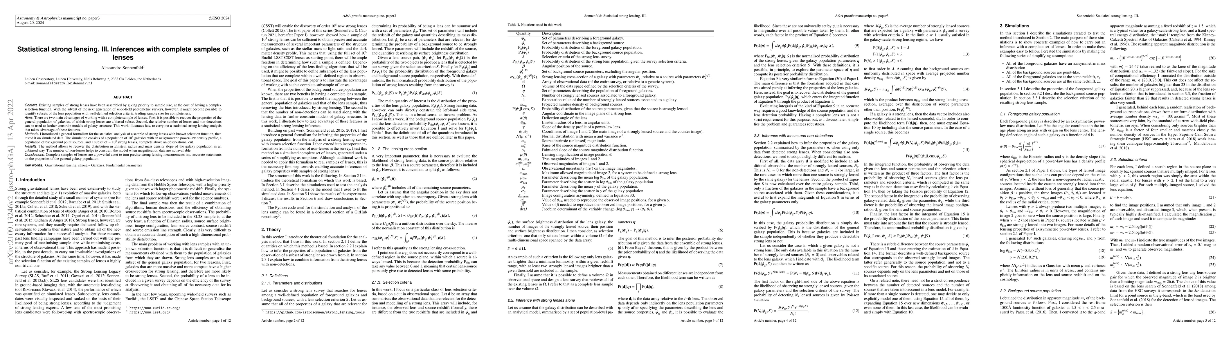 This paper develops a method for statistical strong lensing analysis using complete samples of lenses, which allows for unbiased recovery of the general galaxy population properties and better model constraints. The approach is tested on simulated data, demonstrating its effectiveness in deriving accurate statements about galaxies from precise lensing measurements.