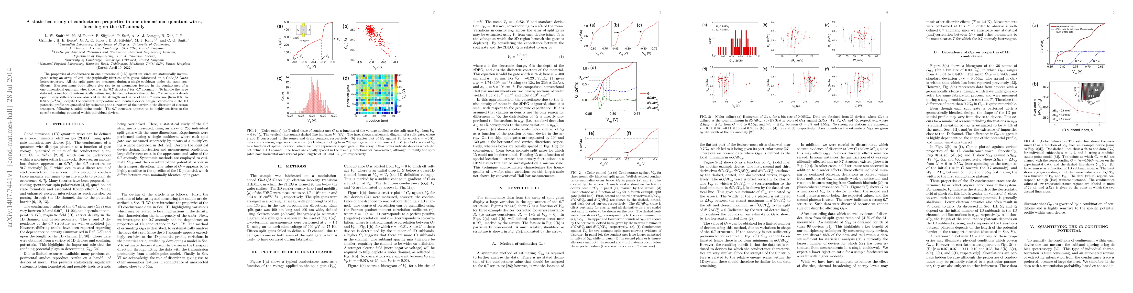 This study statistically investigates conductance properties in one-dimensional quantum wires, focusing on the 0.7 anomaly, revealing significant variability in its strength despite identical device conditions. The research quantifies variations in the 1D potential profile, suggesting the anomaly's sensitivity to the confining potential.