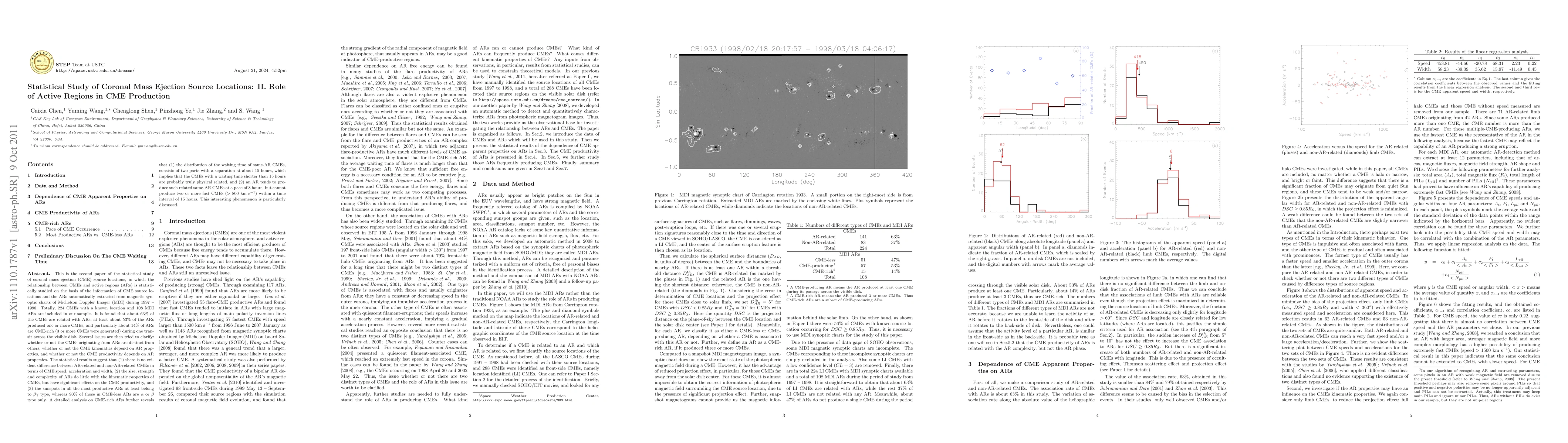 This study statistically analyzes the relationship between coronal mass ejections (CMEs) and active regions (ARs) from 1997-1998, finding that 63% of CMEs originate from ARs, with 14% of ARs being highly productive (generating 3 or more CMEs). The research concludes that while CME kinematics are not significantly affected by AR properties, CME productivity is, with more complex ARs producing more CMEs.