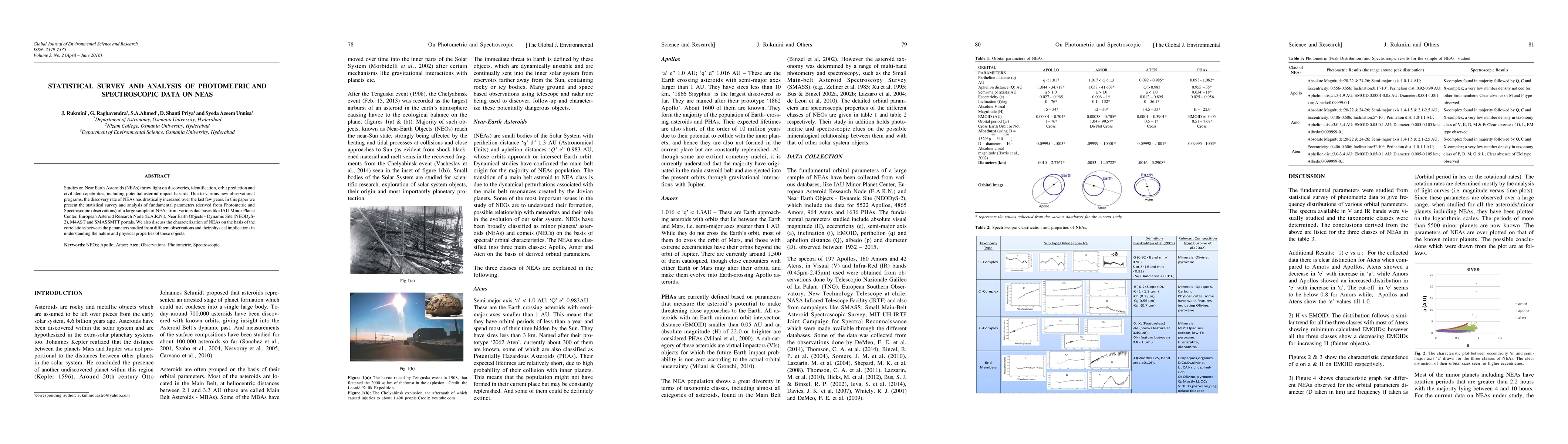 This paper statistically surveys and analyzes photometric and spectroscopic data from various databases to study fundamental parameters of Near Earth Asteroids (NEAs), aiming to understand their nature and physical properties, and to improve orbit prediction and impact hazard assessments. The study highlights correlations between observational data and their physical implications.
