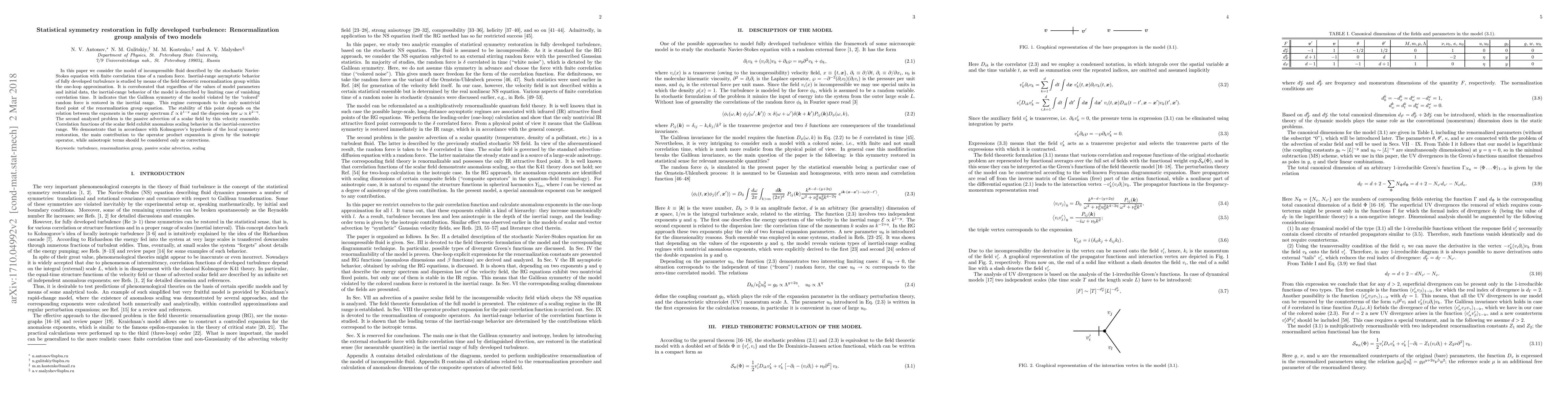 This paper uses renormalization group analysis to study the inertial-range behavior of turbulence in incompressible fluids, showing that Galilean symmetry is restored despite the influence of a "colored" random force. The analysis also examines passive scalar advection, revealing that the main contributions to correlation functions follow Kolmogorov's hypothesis of local symmetry restoration.
