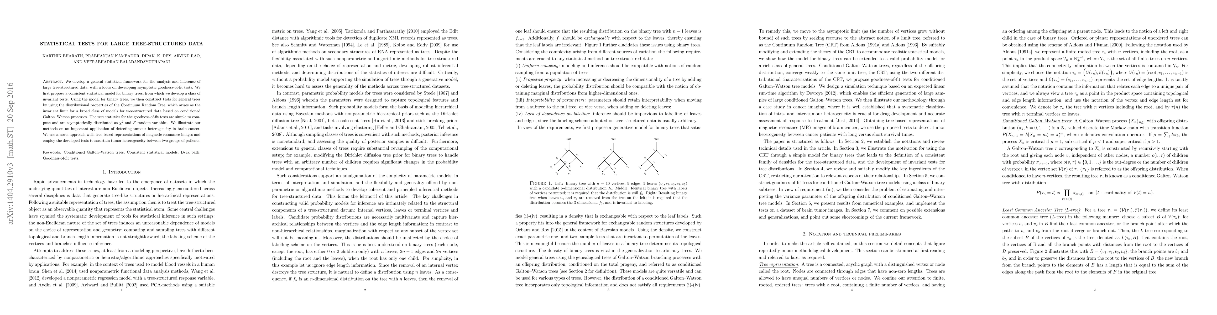 Researchers developed statistical tests for analyzing large tree-structured data, creating a framework for asymptotic goodness-of-fit tests that can detect tumor heterogeneity in brain cancer.