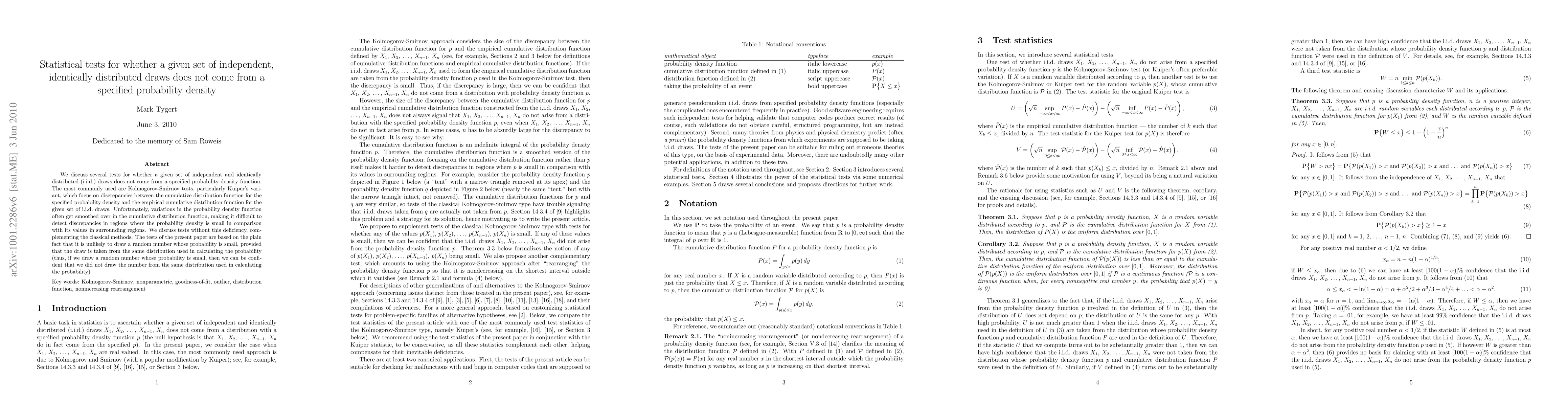New statistical tests help detect if a set of independent draws comes from a specified probability density function, addressing limitations of existing methods. These tests focus on the rarity of small probabilities in a draw taken from the same distribution as used to calculate its value.