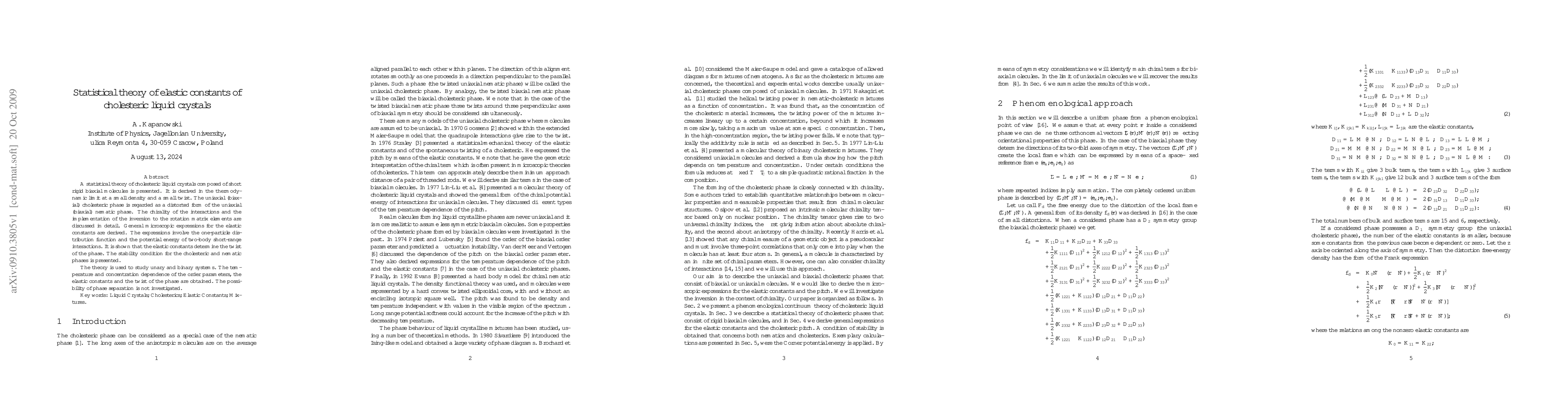 This paper presents a statistical theory for cholesteric liquid crystals made of short rigid biaxial molecules, deriving general expressions for elastic constants that determine phase twist. It examines the stability conditions for cholesteric and nematic phases, and explores the temperature and concentration dependence of order parameters and elastic constants in unary and binary systems.