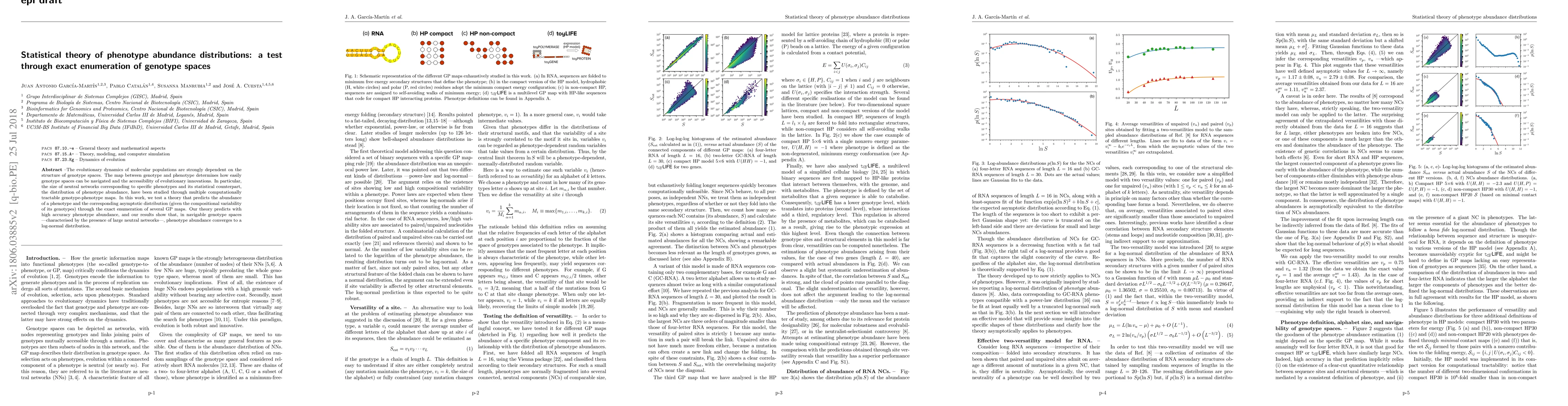 This paper tests a statistical theory predicting phenotype abundance through exact enumeration of genotype spaces, finding high accuracy in predictions and demonstrating that phenotype abundance converges to a log-normal distribution in navigable genotype spaces with large neutral networks.