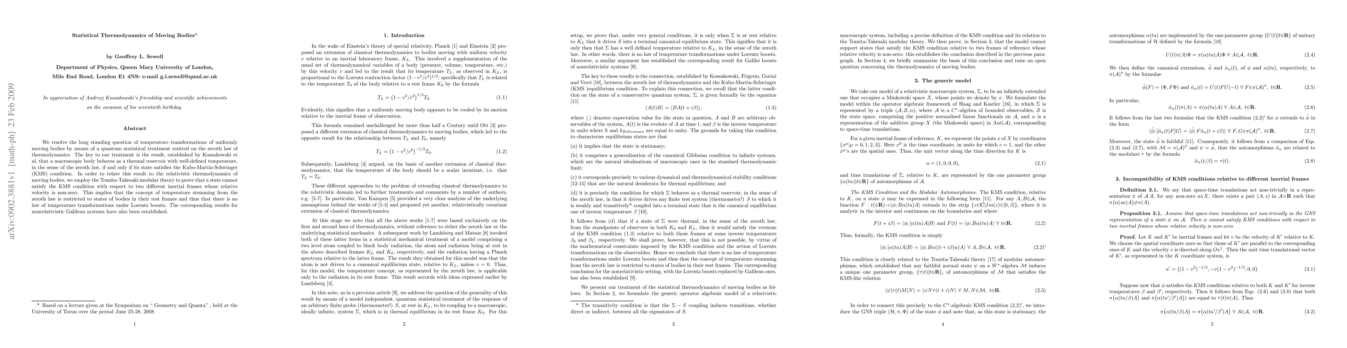 This paper resolves the temperature dependence of uniformly moving bodies through quantum statistical treatment, showing that temperature is frame-dependent and only meaningful in the rest frame. The study uses the Kubo-Martin-Schwinger condition and Tomita-Takesaki modular theory to demonstrate that no temperature transformation law exists under Lorentz boosts.