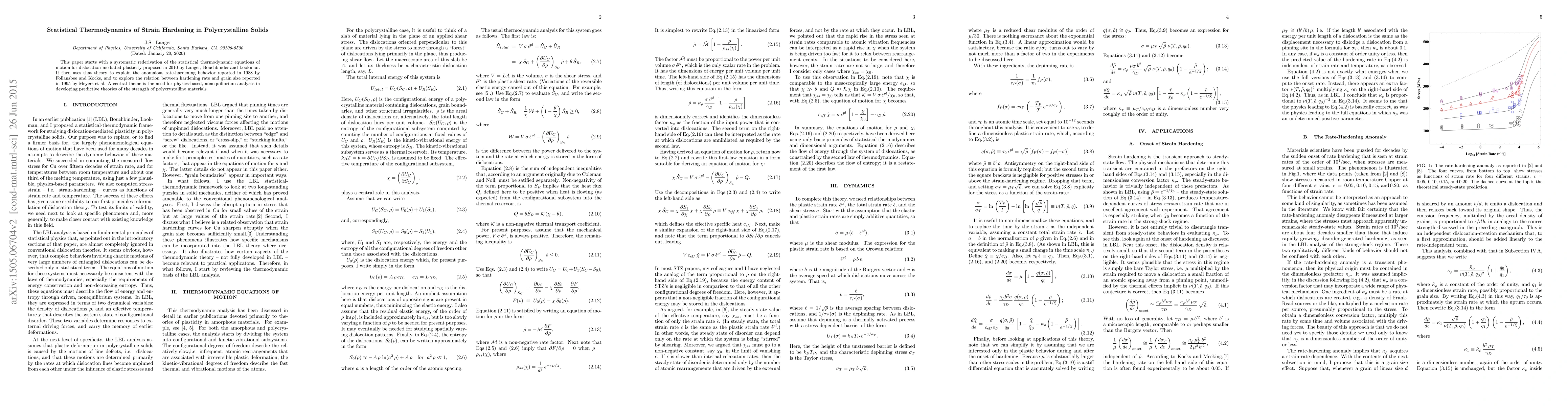 This paper redevelops statistical thermodynamic equations to explain strain hardening in polycrystalline solids, shedding light on the relation between grain size and strength.