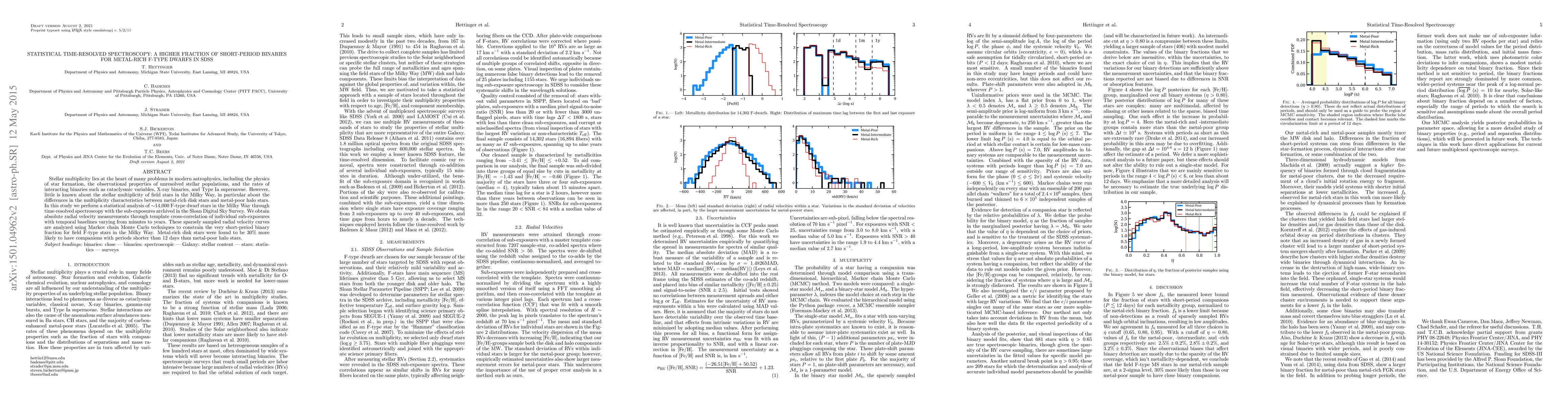 Stellar multiplicity lies at the heart of many problems in modern astrophysics, including the physics of star formation, the observational properties of unresolved stellar populations, and the rates of interacting binaries such as cataclysmic variables, X-ray binaries, and Type Ia supernovae. However, little is known about the stellar multiplicity of field stars in the Milky Way, in particular about the differences in the multiplicity characteristics between metal-rich disk stars and metal-poor halo stars. In this study we perform a statistical analysis of ~14,000 F-type dwarf stars in the Milky Way through time-resolved spectroscopy with the sub-exposures archived in the Sloan Digital Sky Survey. We obtain absolute radial velocity measurements through template cross-correlation of individual sub-exposures with temporal baselines varying from minutes to years. These sparsely sampled radial velocity curves are analyzed using Markov chain Monte Carlo techniques to constrain the very short-period binary fraction for field F-type stars in the Milky Way. Metal-rich disk stars were found to be 30% more likely to have companions with periods shorter than 12 days than metal-poor halo stars.