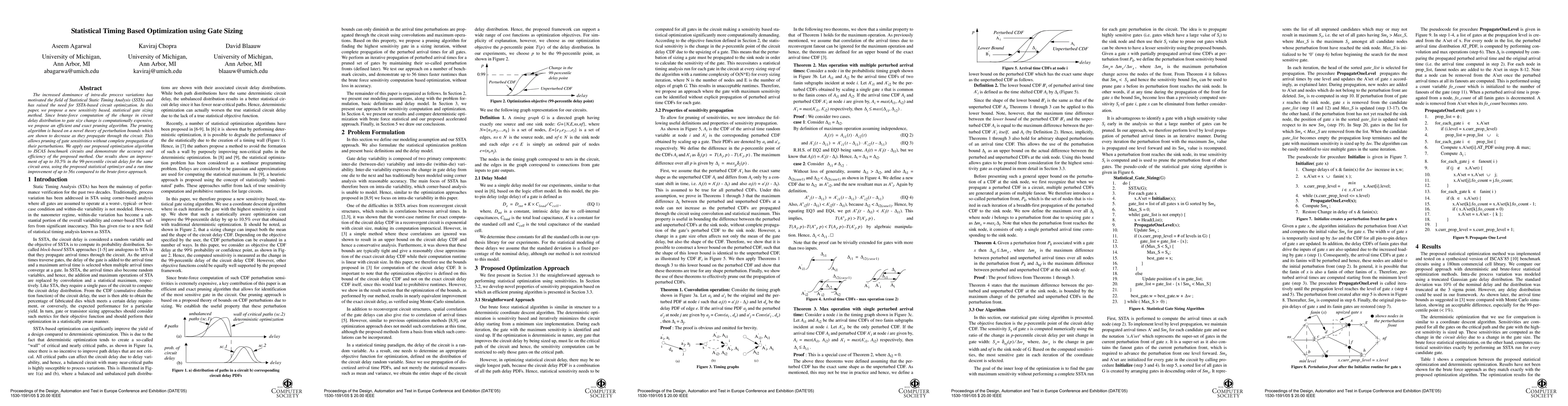 The paper introduces an efficient pruning algorithm based on perturbation bounds for sensitivity-based statistical gate sizing, significantly reducing computational complexity without compromising accuracy.