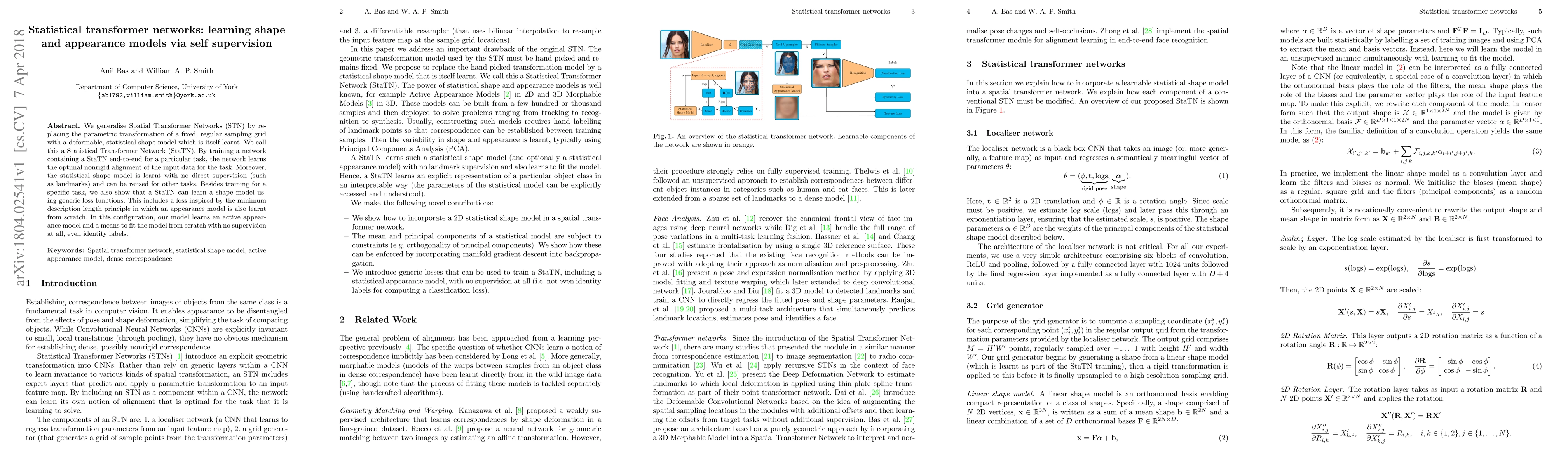 We generalise Spatial Transformer Networks (STN) by replacing the parametric transformation of a fixed, regular sampling grid with a deformable, statistical shape model which is itself learnt. We call this a Statistical Transformer Network (StaTN). By training a network containing a StaTN end-to-end for a particular task, the network learns the optimal nonrigid alignment of the input data for the task. Moreover, the statistical shape model is learnt with no direct supervision (such as landmarks) and can be reused for other tasks. Besides training for a specific task, we also show that a StaTN can learn a shape model using generic loss functions. This includes a loss inspired by the minimum description length principle in which an appearance model is also learnt from scratch. In this configuration, our model learns an active appearance model and a means to fit the model from scratch with no supervision at all, even identity labels.