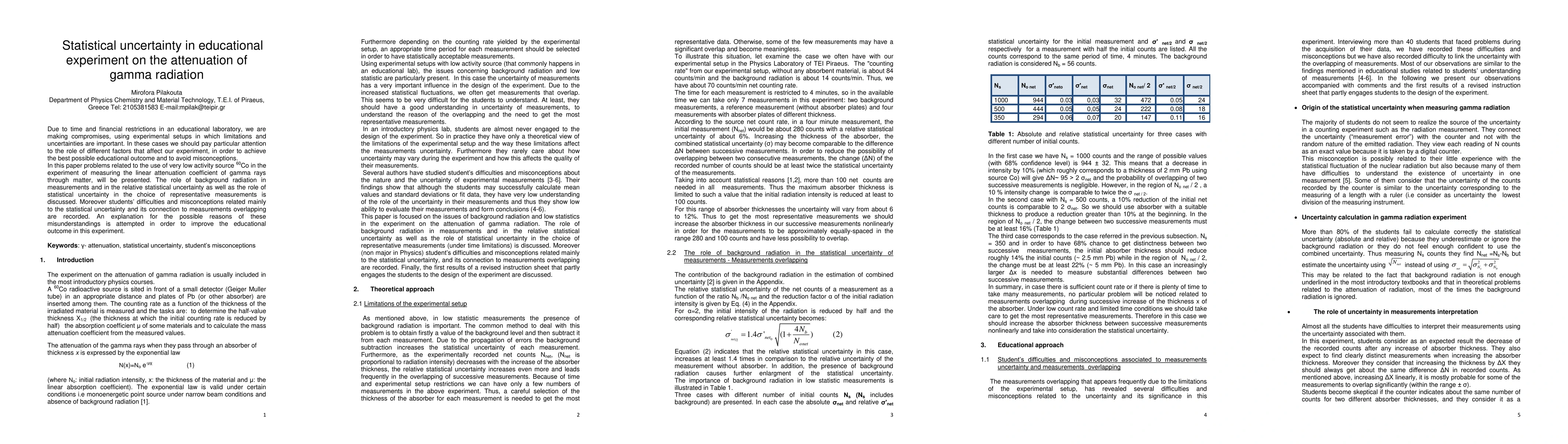 Due to time and financial restrictions in an educational laboratory, we are making compromises, using experimental setups in which limitations and uncertainties are important. In these cases we should pay particular attention to the role of different factors that affect our experiment, in order to achieve the best possible educational outcome and to avoid misconceptions. In this paper problems related to the use of very low activity source 60Co in the experiment of measuring the linear attenuation coefficient of gamma rays through matter, will be presented. The role of background radiation in measurements and in the relative statistical uncertainty as well as the role of statistical uncertainty in the choice of representative measurements is discussed. Moreover students' difficulties and misconceptions related mainly to the statistical uncertainty and its connection to measurements overlapping are recorded. An explanation for the possible reasons of these misunderstandings is attempted in order to improve the educational outcome in this experiment.