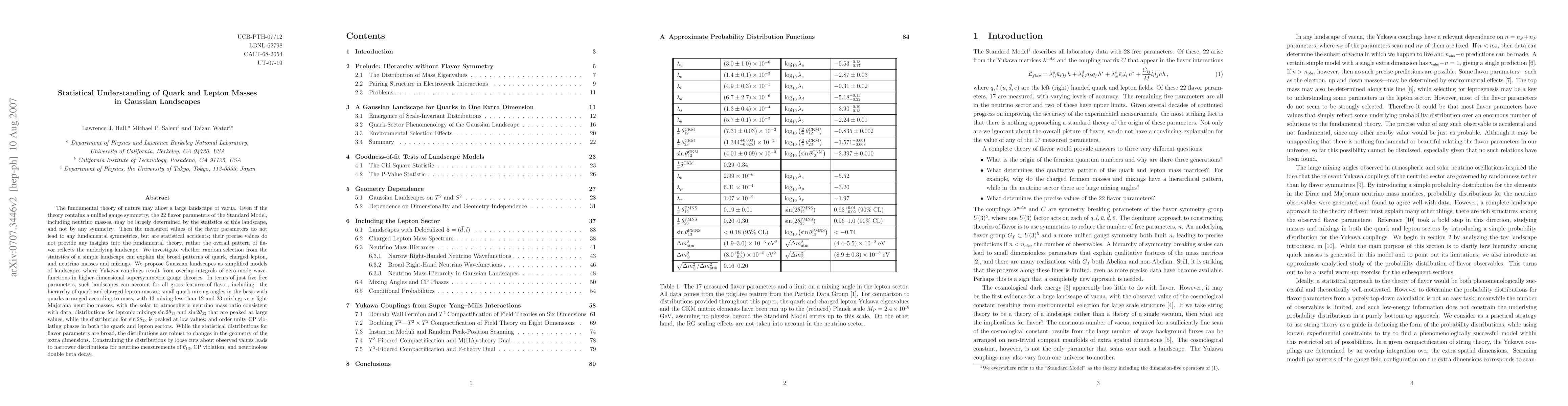 This paper explores how a large statistical landscape of vacua can determine the mass and mixing parameters of quarks, charged leptons, and neutrinos without relying on fundamental symmetries. The authors propose Gaussian landscapes as simplified models to explain the broad patterns of these parameters, demonstrating that five free parameters can account for the hierarchy and mixing observed in the Standard Model.