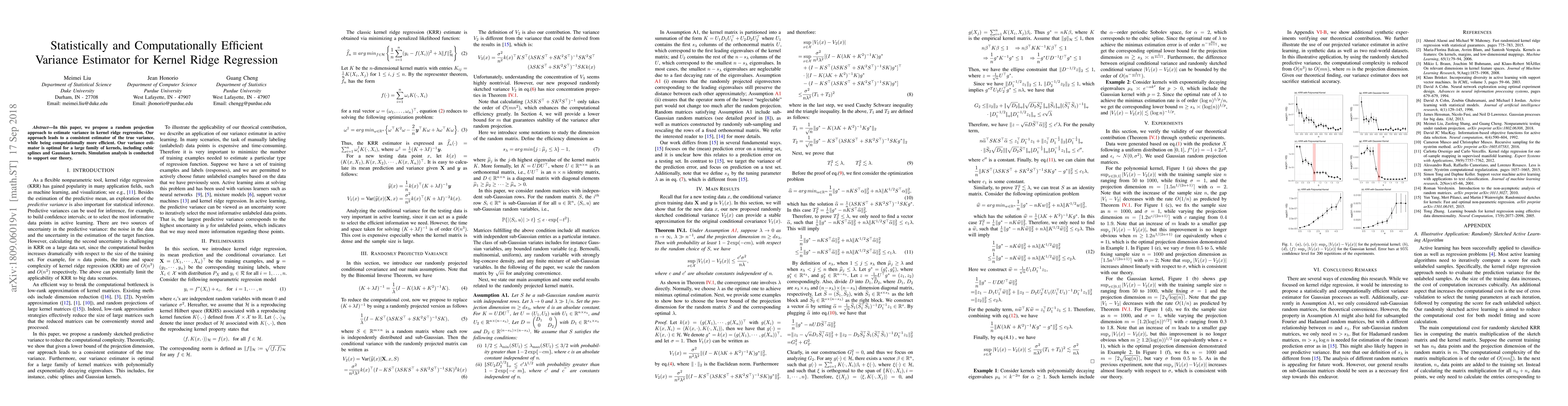 This paper proposes a random projection method for estimating variance in kernel ridge regression, achieving computational efficiency while maintaining consistency. The proposed variance estimator is optimal for various kernels and is validated through simulation analysis.