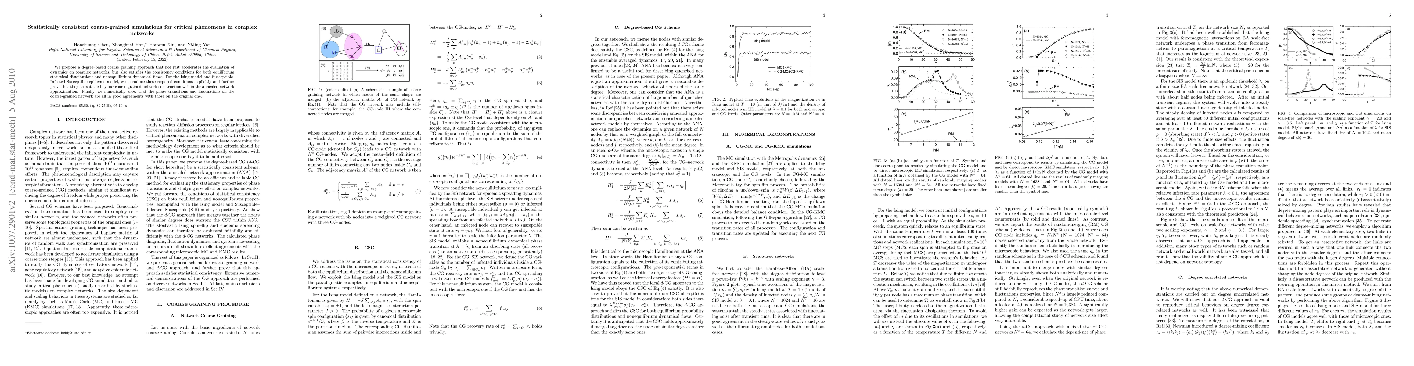 This paper introduces a degree-based coarse-graining method for complex networks that maintains statistical consistency for both equilibrium and nonequilibrium dynamics. It demonstrates the method's accuracy through the Ising model and susceptible-infected-susceptible epidemic model, showing that phase transitions and fluctuations on the coarse-grained network match those of the original network.