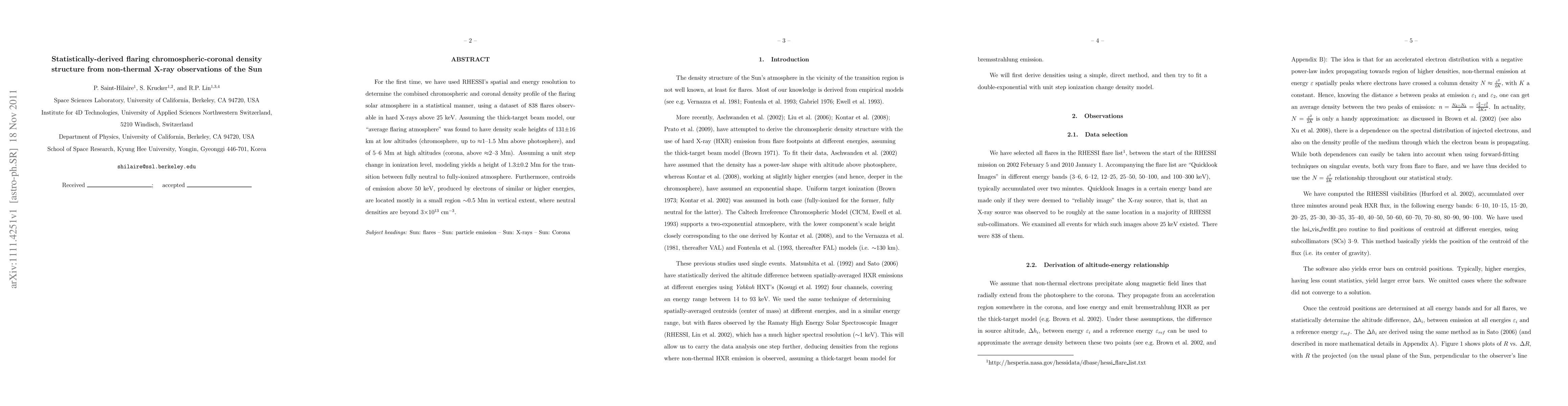 This study statistically derives the density structure of the flaring solar atmosphere using RHESSI data from 838 hard X-ray flares, revealing scale heights of 131±16 km in the chromosphere and 5-6 Mm in the corona, with a transition from neutral to ionized plasma at 1.3±0.2 Mm altitude.