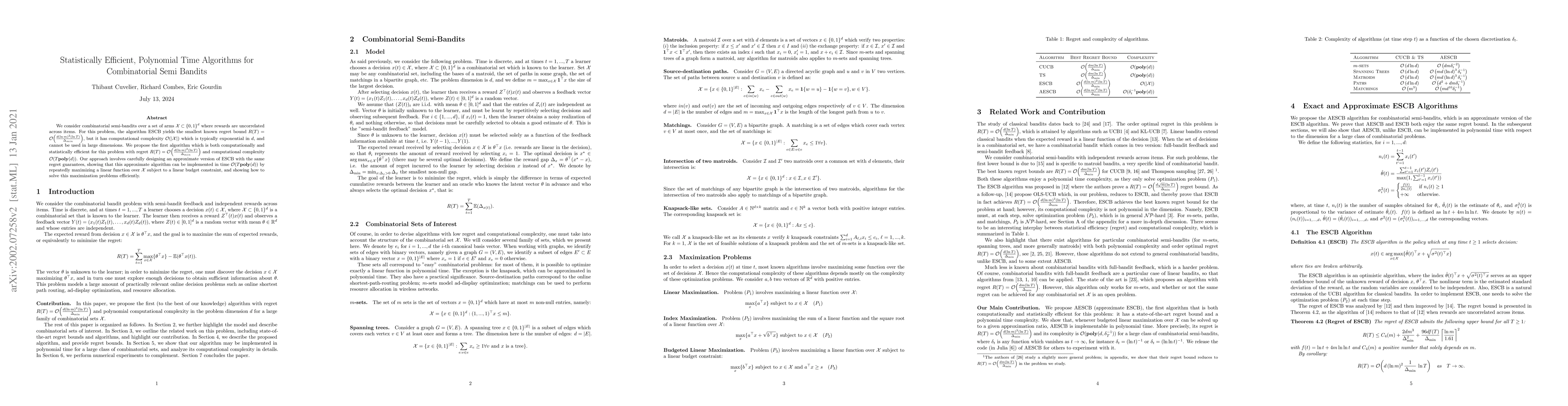 This research paper proposes an efficient algorithm for combinatorial semi-bandits that balances computational complexity with statistical efficiency, offering a polynomial-time solution for large dimensions.