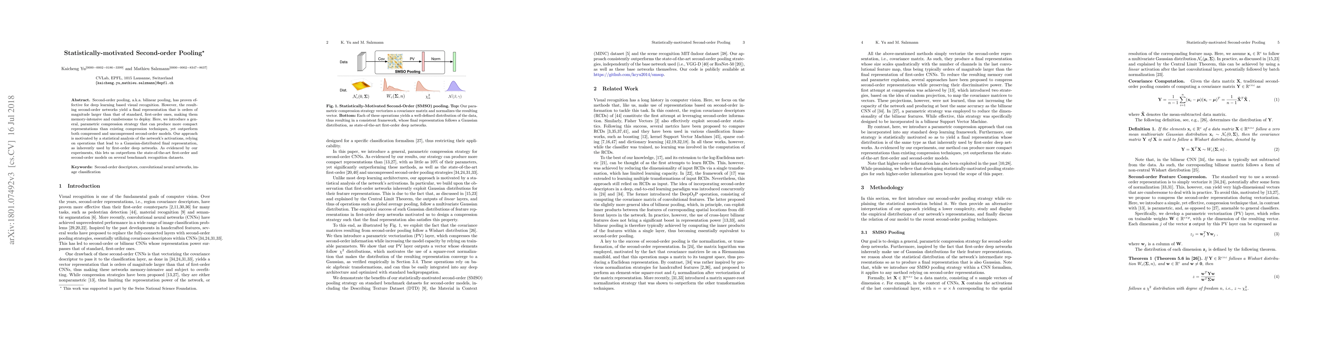 This paper proposes a parametric compression strategy for second-order pooling networks that generates more compact representations compared to existing methods, while outperforming both compressed and uncompressed second-order models. The approach is statistically motivated and results in a Gaussian-distributed final representation, leading to superior performance on benchmark recognition datasets.