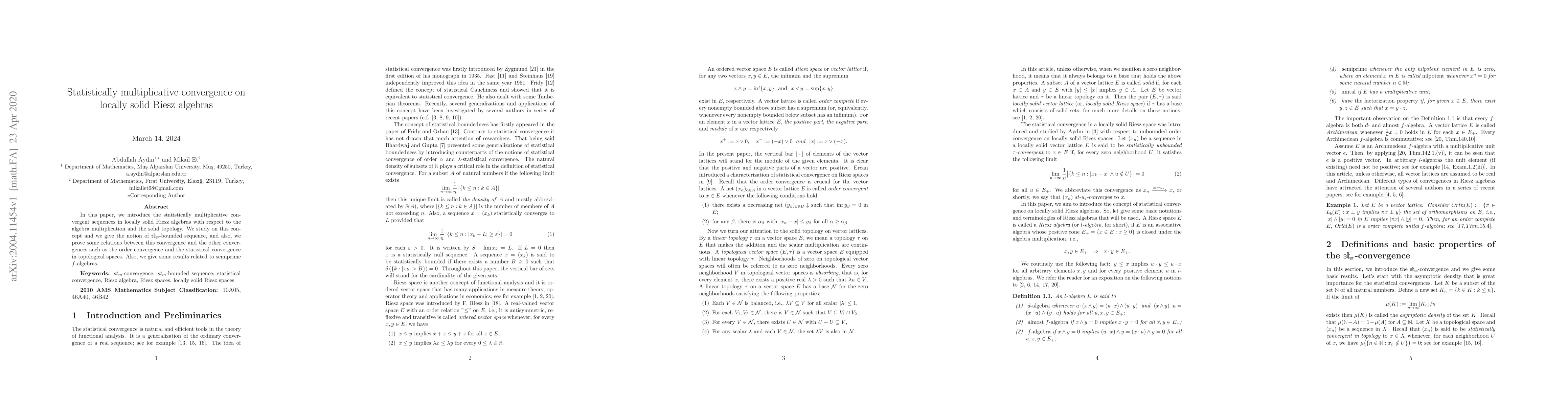 This paper introduces statistically multiplicative convergence in locally solid Riesz algebras, defining $\mathbb{st_m}$-bounded sequences and exploring their relationships with order convergence and statistical convergence. It also presents results concerning semiprime $f$-algebras.