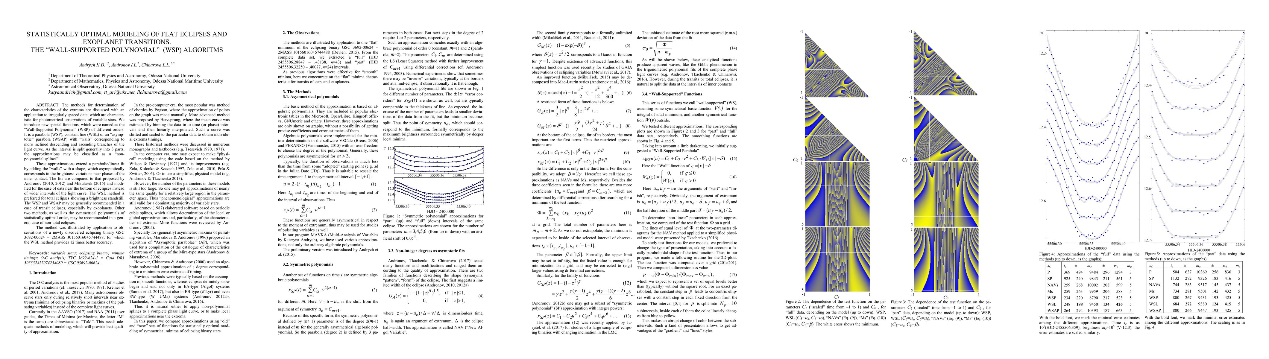 The methods for determination of the characteristics of the extrema are discussed with an application to irregularly spaced data, which are characteristic for photometrical observations of variable stars. We introduce new special functions, which were named as the "Wall-Supported Polynomial" (WSP) of different orders. It is a parabola (WSP), constant line (WSL) or an "asymptotic" parabola (WSAP) with "walls" corresponding to more inclined descending and ascending branches of the light curve. As the interval is split generally into 3 parts, the approximations may be classified as a "non-polynomial spline". These approximations extend a parabolic/linear fit by adding the "walls" with a shape, which asymptotically corresponds to the brightness variations near phases of the inner contact. The fits are compared to that proposed by Andronov (2010, 2012) and Mikulasek (2015) and modified for the case of data near the bottom of eclipses instead of wider intervals of the light curve. The WSL method is preferred for total eclipses showing a brightness standstill. The WSP and WSAP may be generally recommended in a case of transit eclipses, especially by exoplanets. Other two methods, as well as the symmetrical polynomials of statistically optimal order, may be recommended in a general case of non-total eclipses. The method was illustrated by application to observations of a newly discovered eclipsing binary GSC 3692-00624 = 2MASS J01560160+5744488, for which the WSL method provides 12 times better accuracy.