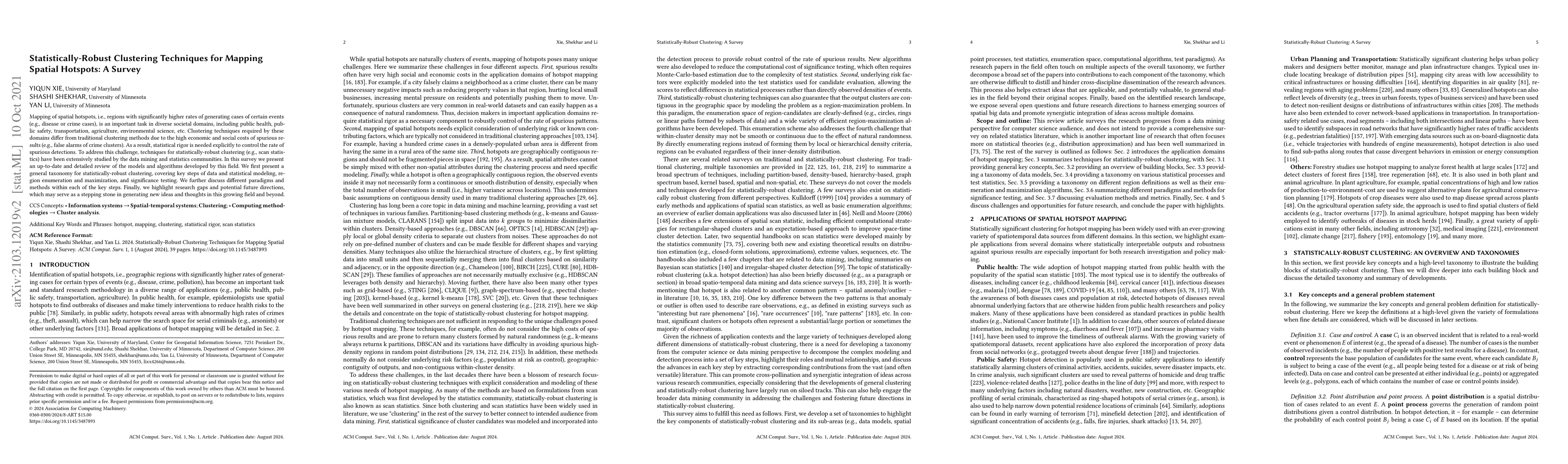 This survey reviews statistically-robust clustering techniques for mapping spatial hotspots in various domains, highlighting key methods and research gaps to improve accuracy and control false alarms.