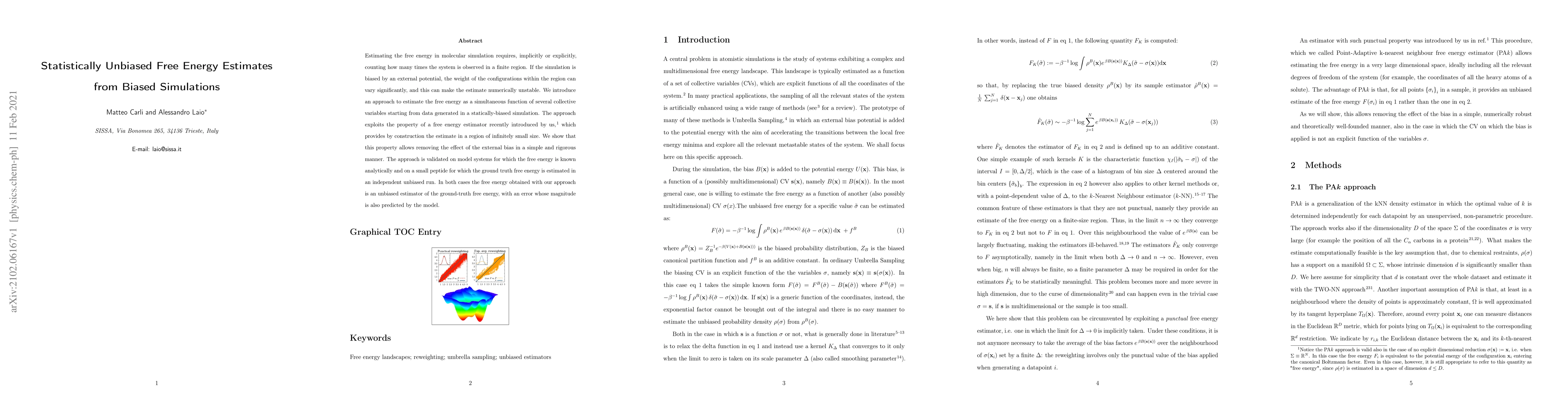 Researchers developed a method to accurately estimate free energy from biased simulations by using collective variables, removing the effect of external bias and producing unbiased estimates.