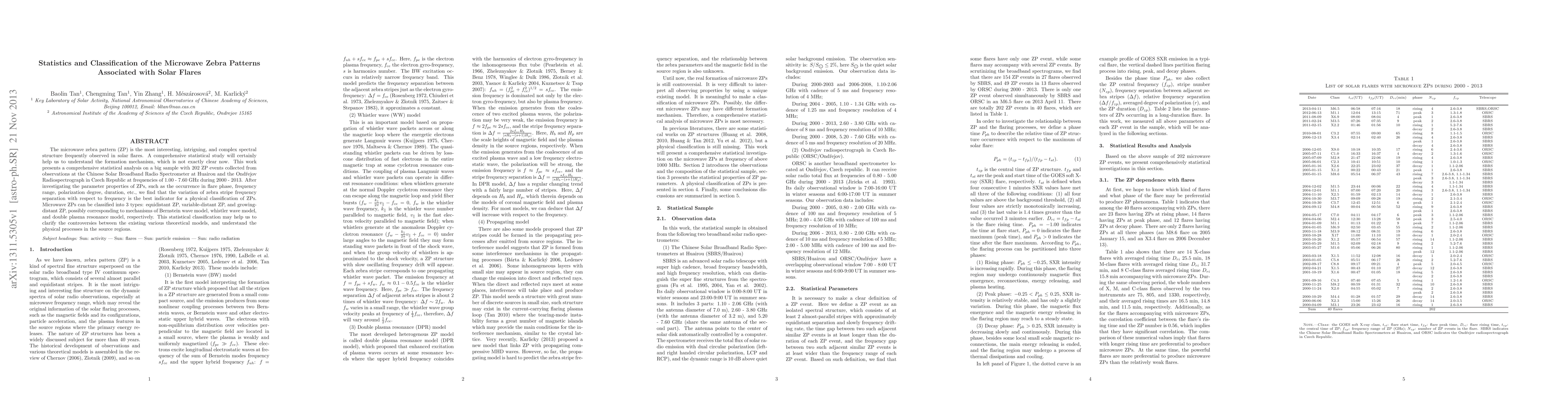 This paper statistically analyzes 202 microwave zebra pattern events observed during 2000-2013 to classify them based on their frequency separation variations. The study identifies three types of zebra patterns, potentially corresponding to different physical mechanisms, aiming to clarify theoretical models and understand solar flare processes.