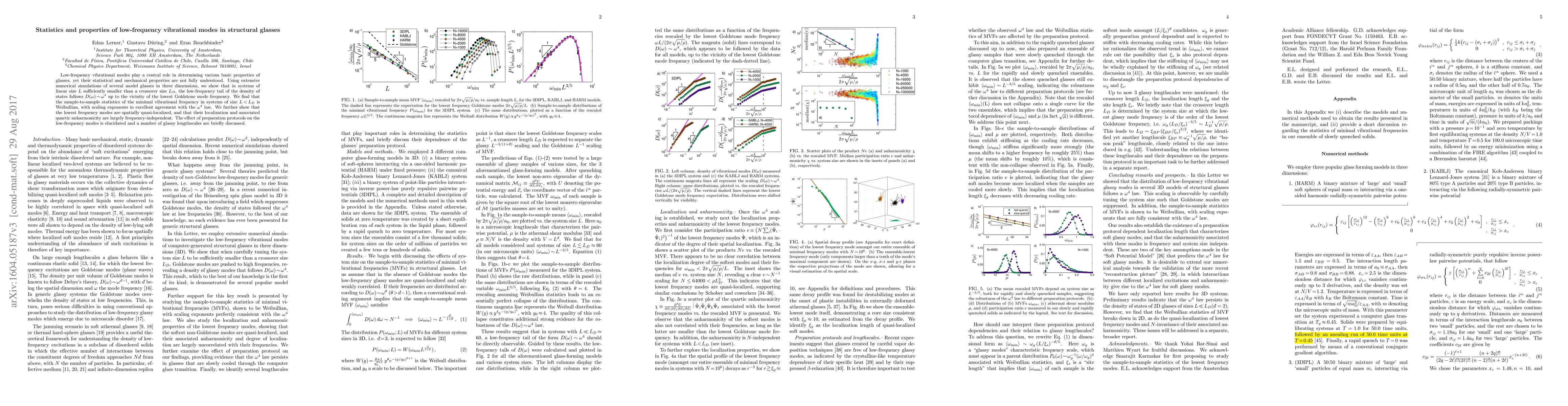 This paper uses numerical simulations to explore low-frequency vibrational modes in structural glasses, finding that their density of states follows a $\omega^4$ law in small systems. It also reveals that the minimal vibrational frequency exhibits Weibullian statistics and that the lowest frequency modes are spatially quasi-localized, independent of frequency.